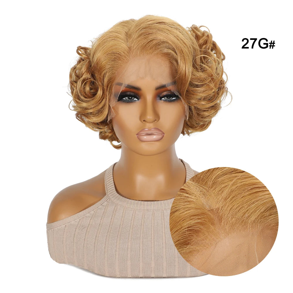 10 Inch Short Curly Wavy Blonde Black Grey Synthetic Wig for Women Natural Look T-Part Lace Front Hair Replacement