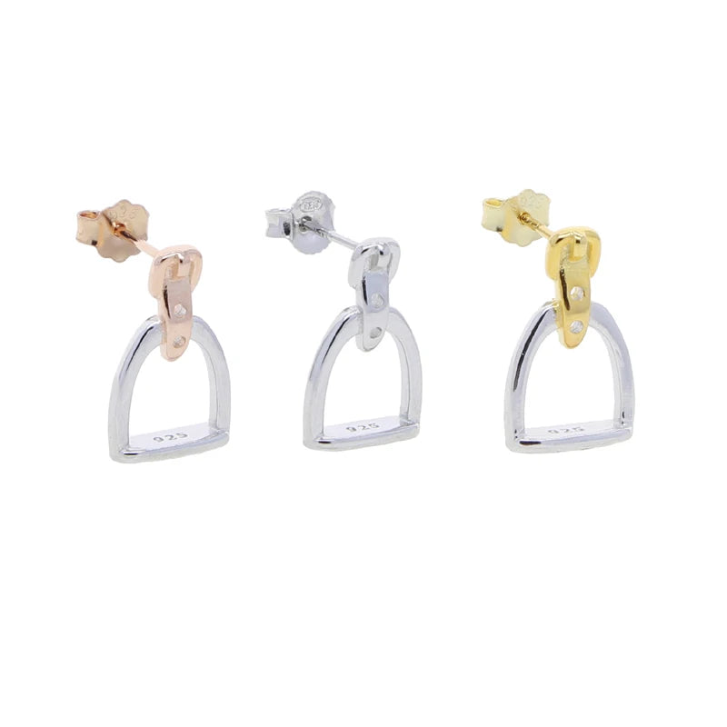 100% 925 Sterling Silver Equestrian Jewelry 3 Colors Cute Lovely Design Stirrup Stud Earring