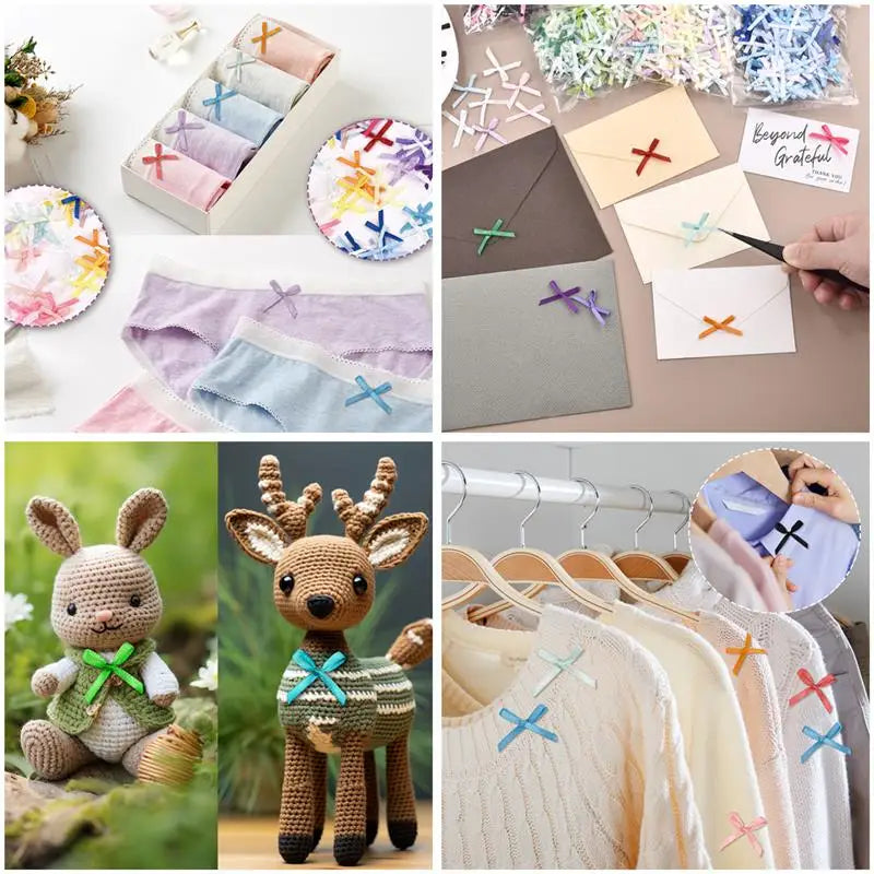 100Pcs 3mm Ribbons Mini Satin Ribbons Flowers Bows Ties Christmas Bowknot For DIY Craft Scrapbooking Embellishment Accessories
