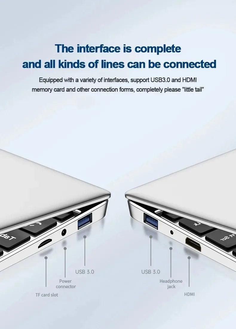 14.1'' Laptop Windows 11 Intel Atom x7 A3950 180° Folding Slim Laptop 12GB RAM 512GB 1TB SSD 1920*1080 Office Study Computer PC
