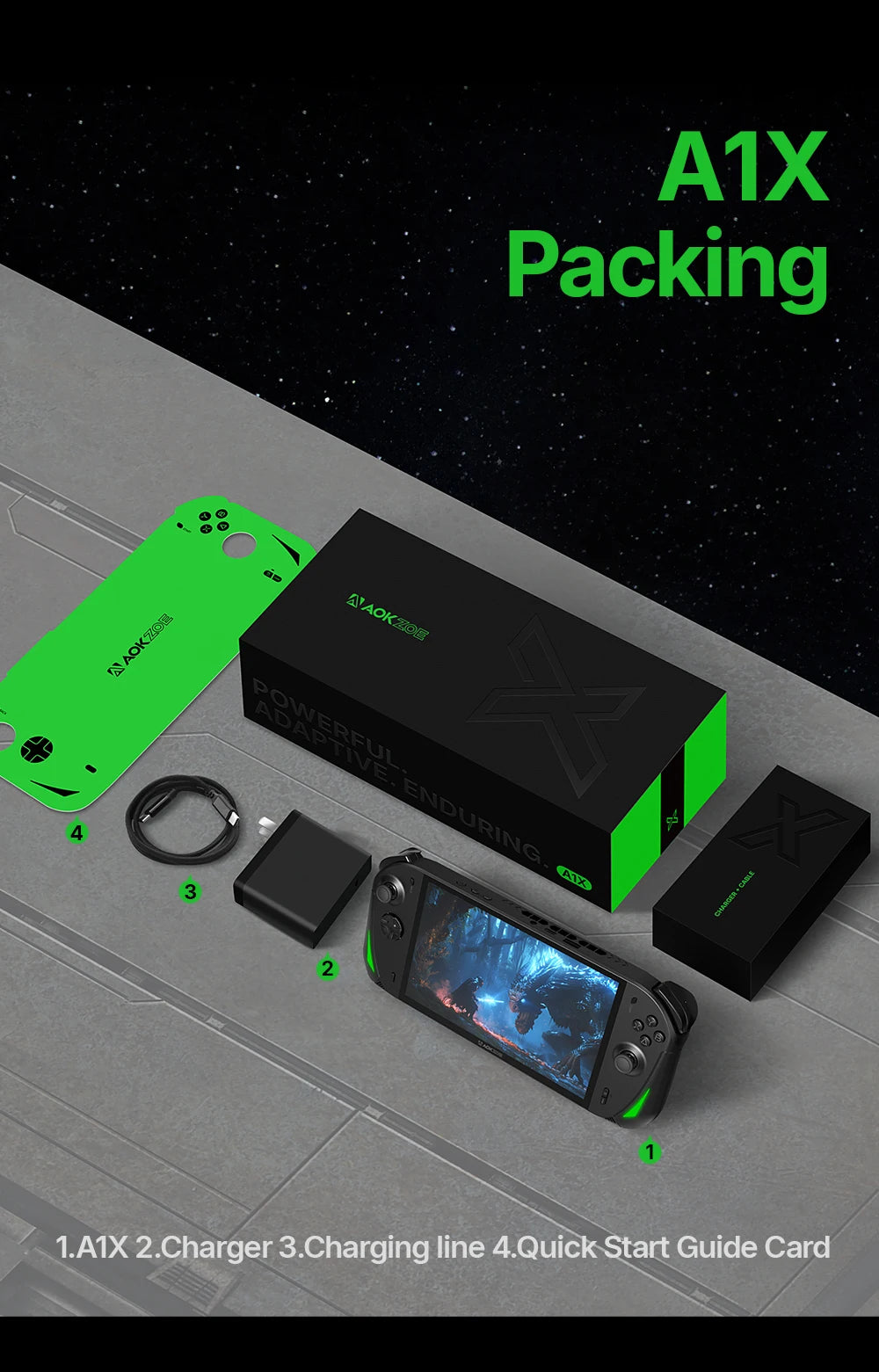 AOKZOE A1X AMD AI 9 HX 370 PC Game Console 8 Inch Native Landscape Screen Windows Handheld Laptops VRR 72.7Wh For Steam 3A Game
