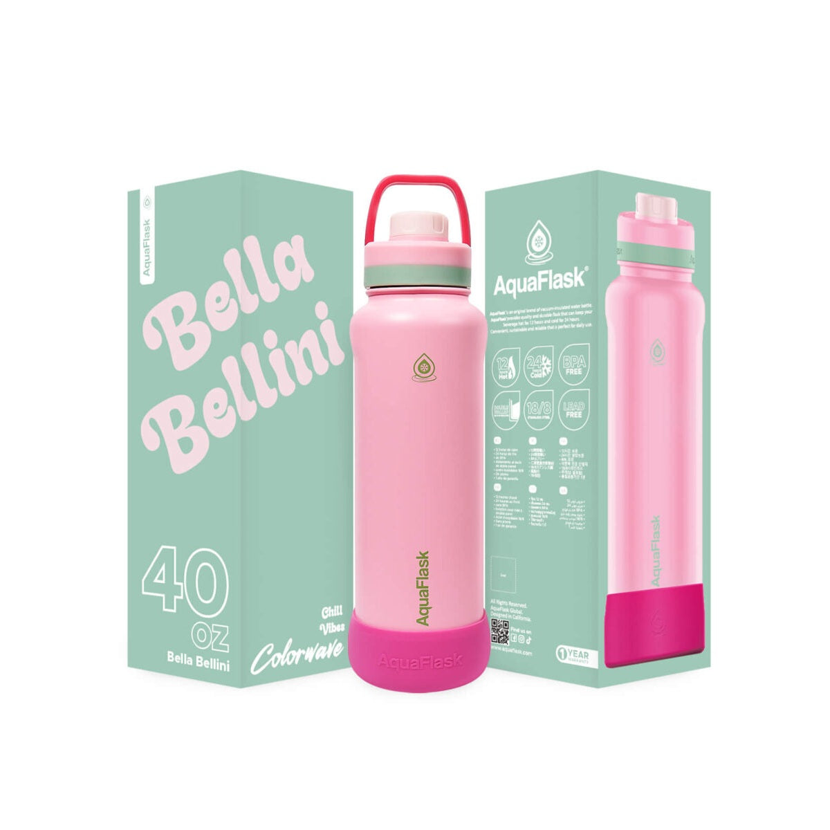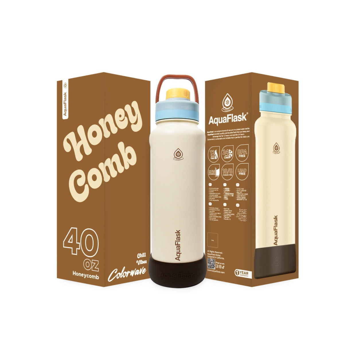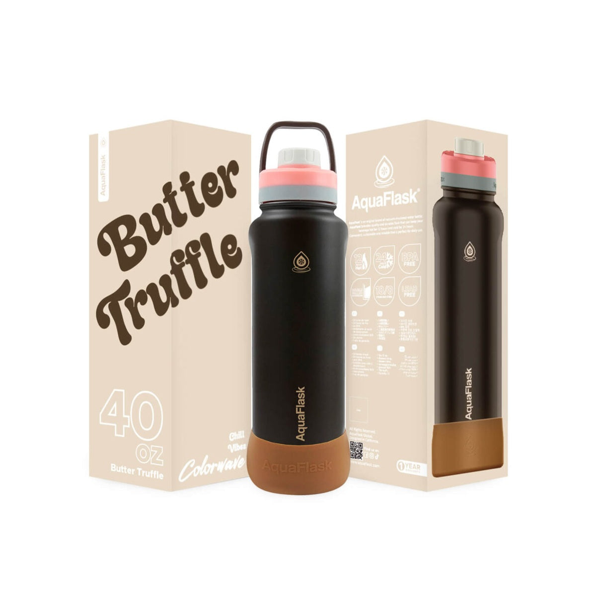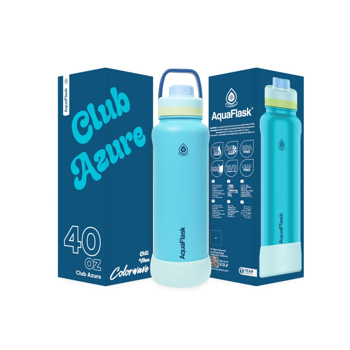 AquaFlask Colorwave 40oz Tumbler – Double Wall Stainless Steel, Keeps Drinks Hot & Cold, Leak-Proof