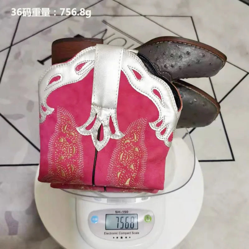 Autumn and Winter Women's Square Toe Thick Heel Colorful Patterned Knight Boots Embroidered Color-Blocked No Slip Women Boots