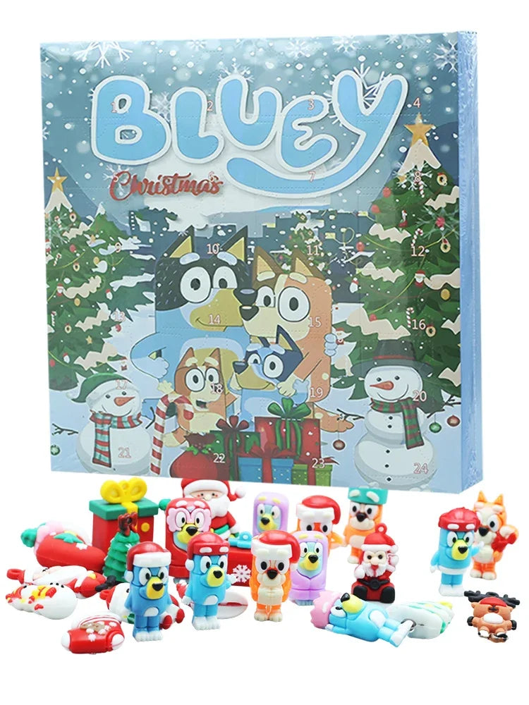 Bluey Figure Christmas Advent Calendar 24pcs Set Blind Box Birthday Gift Kawaii Blue Dog Anime Figural Action Pvc Model Kid Toy