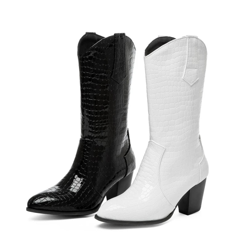 Botas De Mujer Western Cowboy Boots for Women PU Leather Chelsea Boots High Heels Gothic Platform Shoes Big Size 46 47 48 307-1