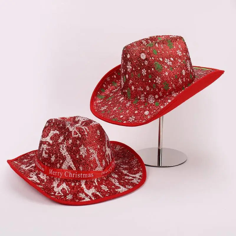 Chapeau de Cowboy de noël rouge, décoration du père noël, accessoires de fête de vacances, chapeau de Cowgirl à large bord, chapeau de Jazz