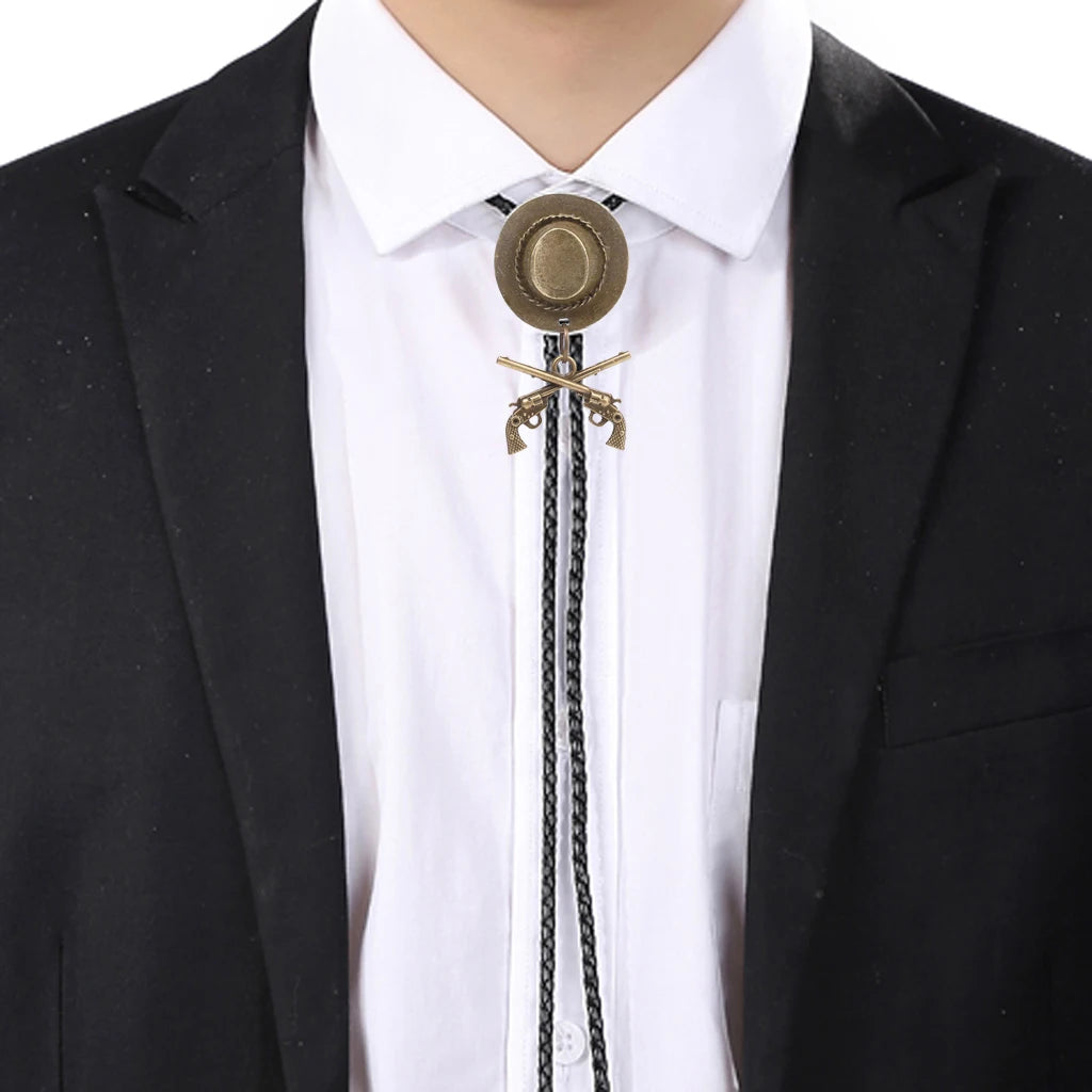 Chapeau de cowboy occidental à double pistolet, cravate bolo, accessoires de mode, cravate bolo en métal