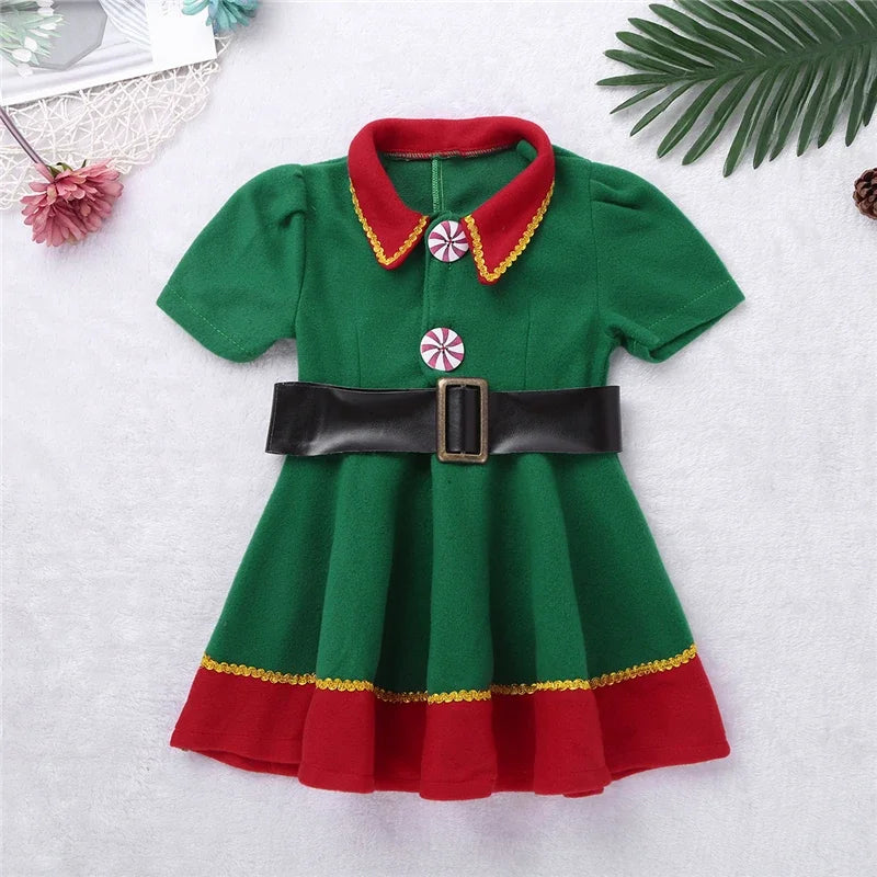 Déguisements d'elfes de Noël pour femmes, robe d'elfe verte et rouge à manches longues pour filles, déguisement de Noël pour enfants