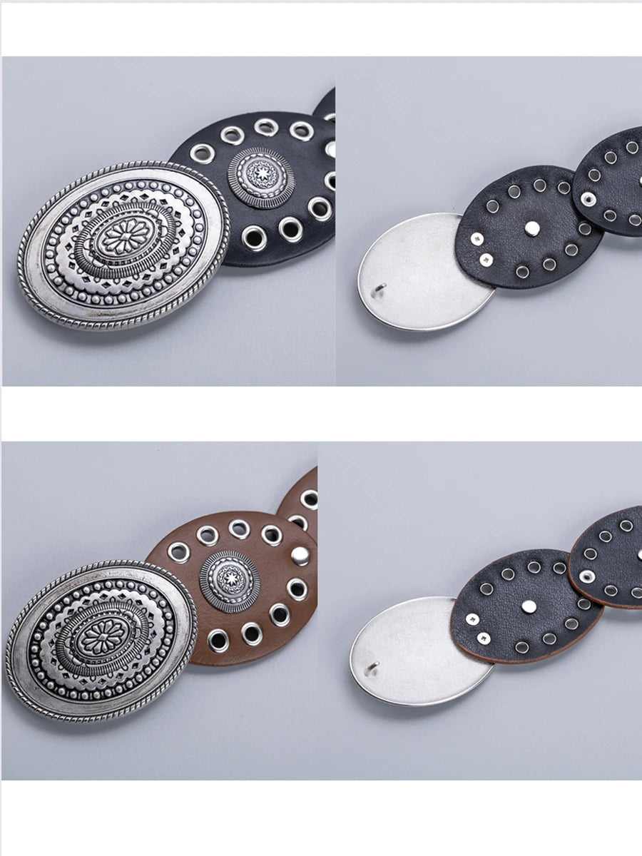Ceintures pour femmes, style cow-girl, style cowboy, œillets ovales en PU évidés, style punk, accessoire de décoration de taille rétro, ceinture sur vêtements