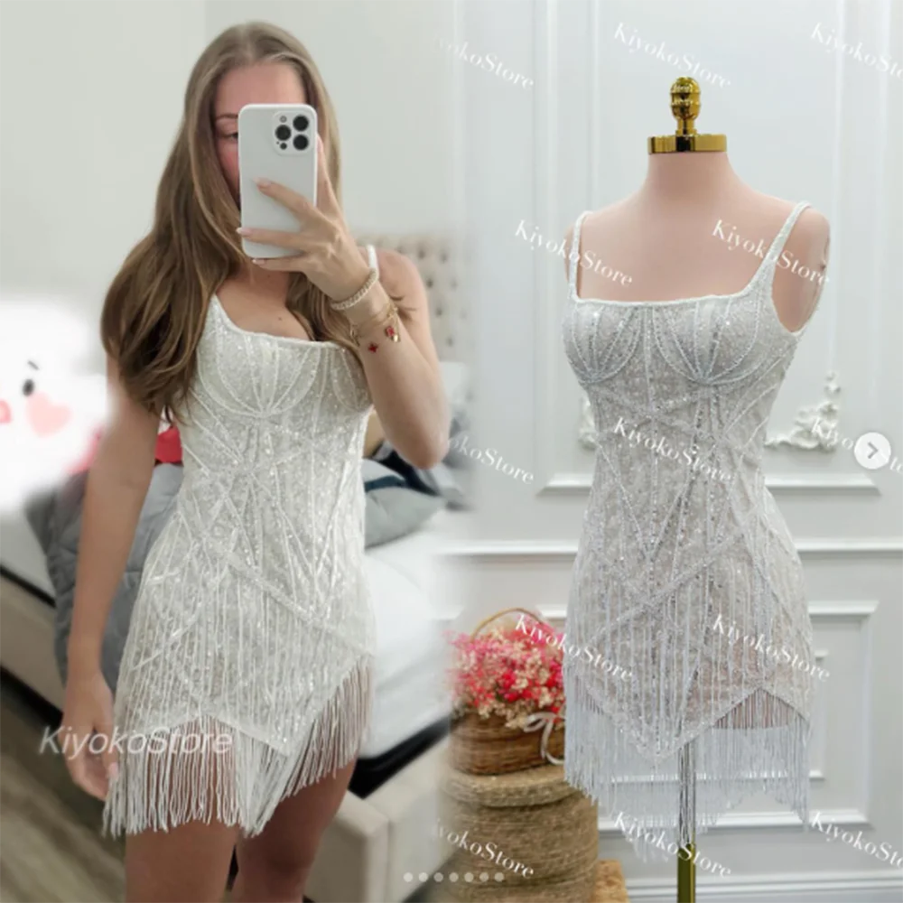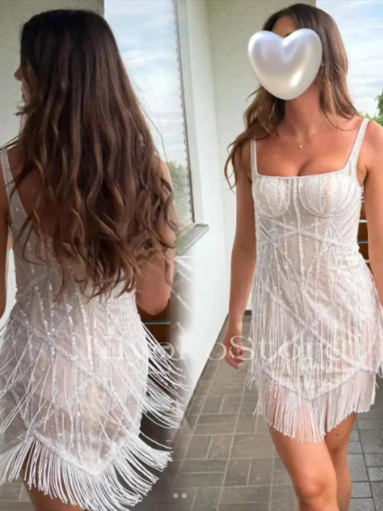 Robes de mariée personnalisées en gros 2025 Robes de mariée scintillantes Robes de mariée mini-longues Robes de mariée à col carré Robes de mariée à dos ouvert