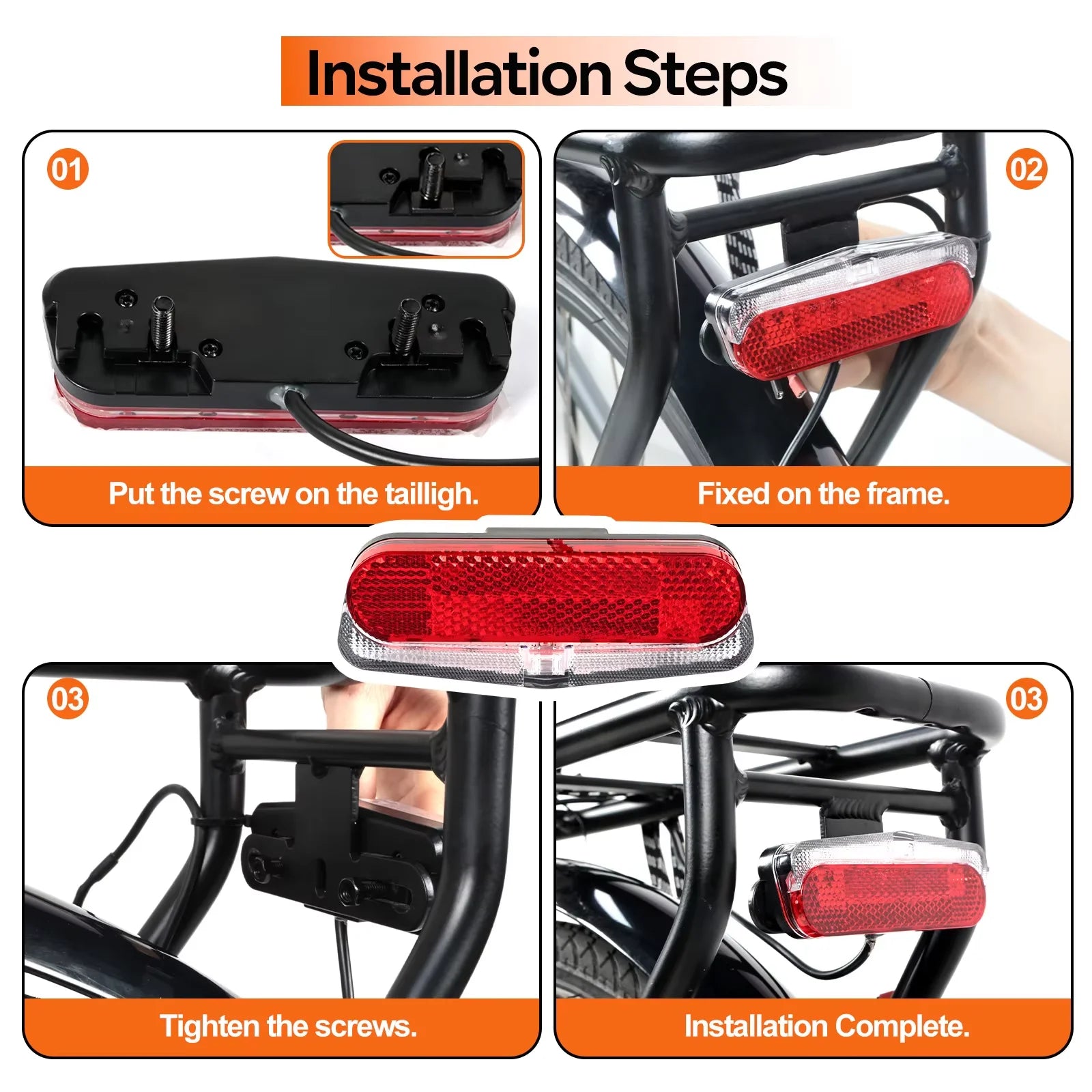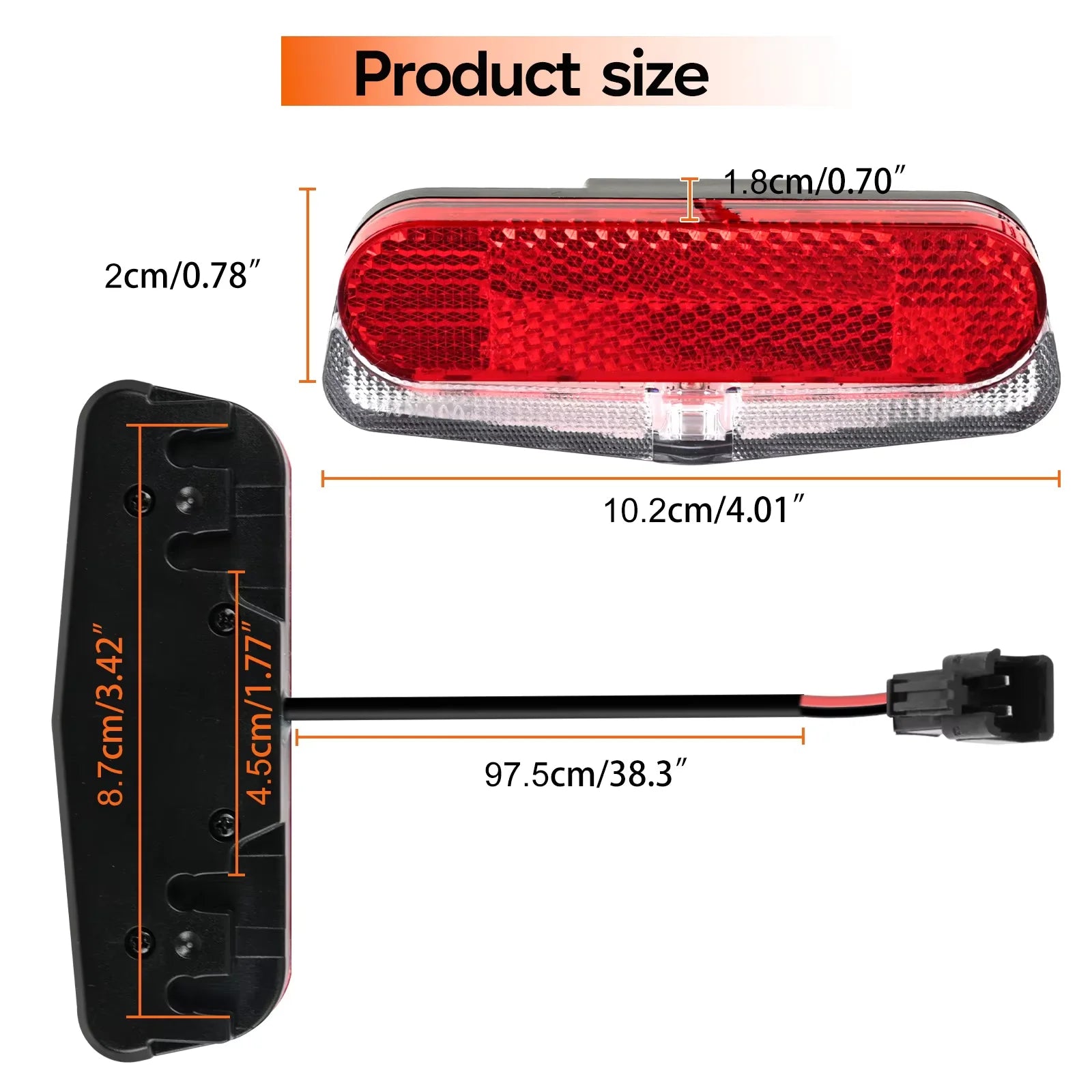 Feu arrière de vélo, feux d'avertissement de sécurité pour vélo électrique, feu arrière LED 12V - 60V avec réflecteur, point culminant de frein, connecteur SM étanche