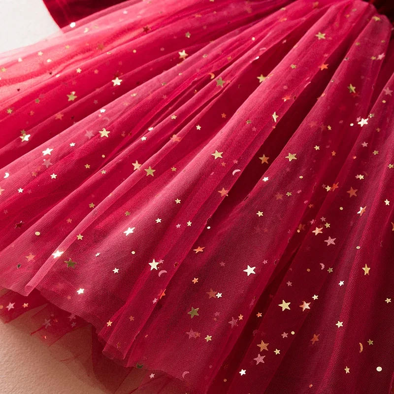 Green Christmas Dress for Kids Girls Autumn Long Sleeves Princess Dresses Children Winter Birthday Party New Year Costume 3-8Yrs