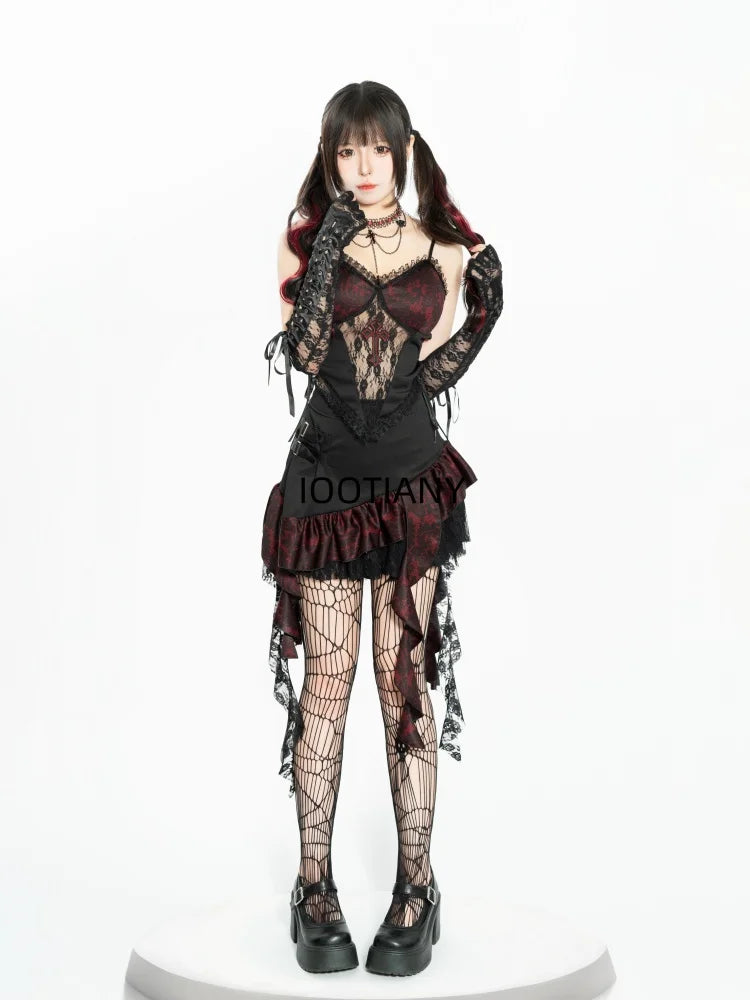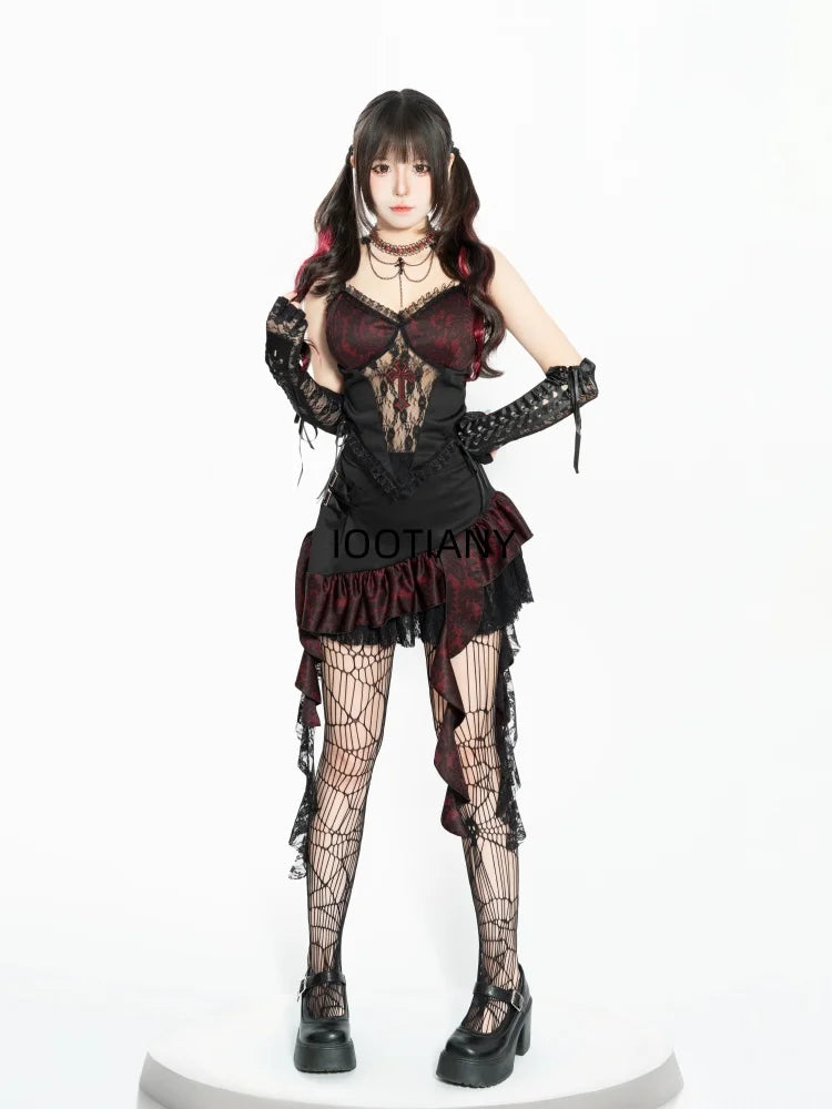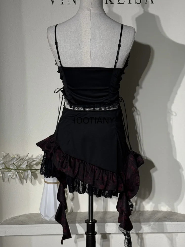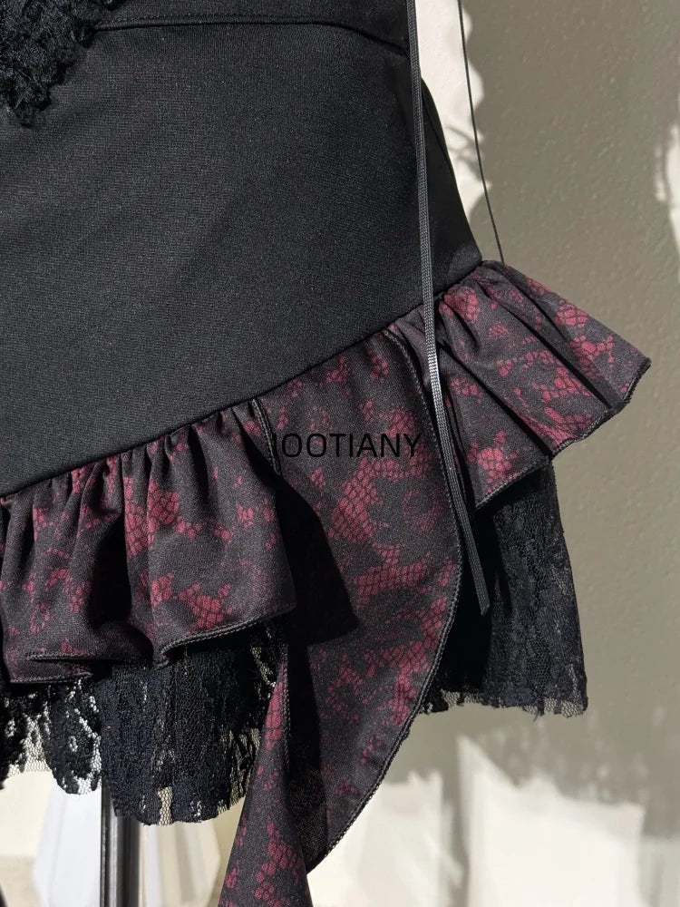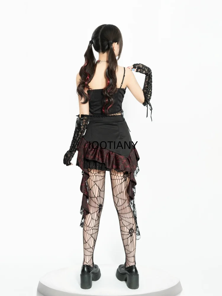 Déguisement de danse sexy pour fille, haut à bretelles croisées noires, jupe irrégulière, ourlet, costume de sœur, nouveauté 2025