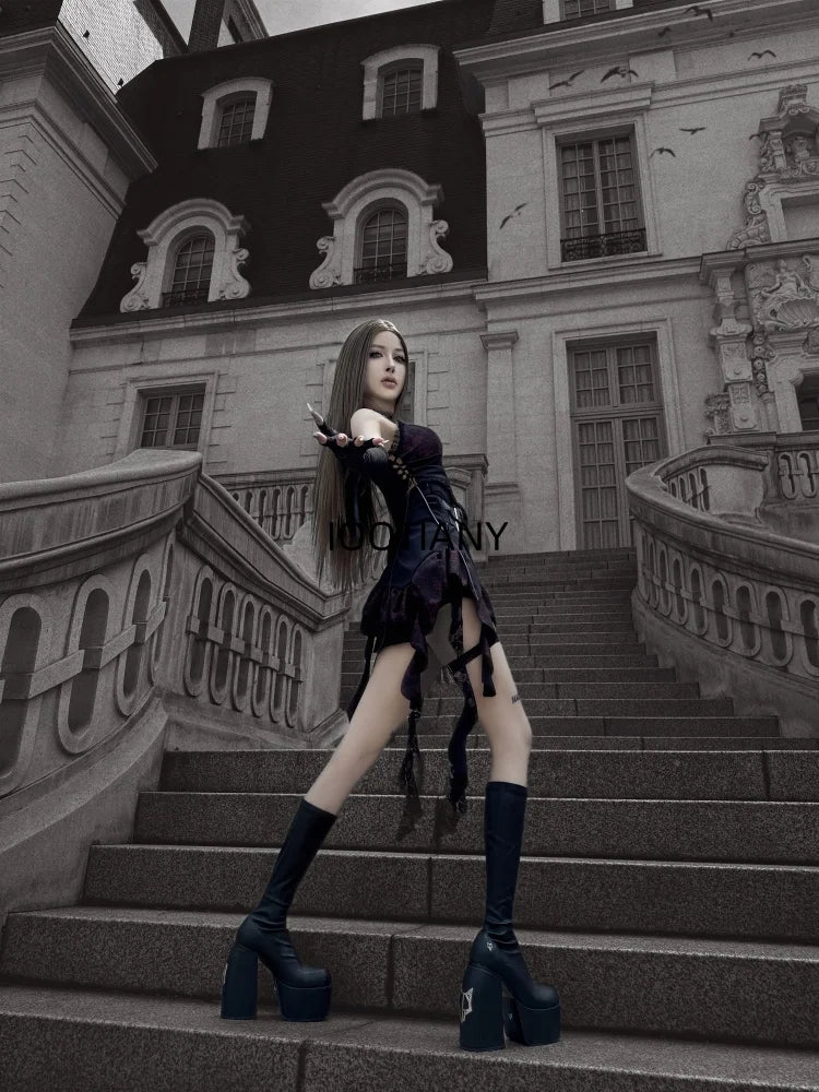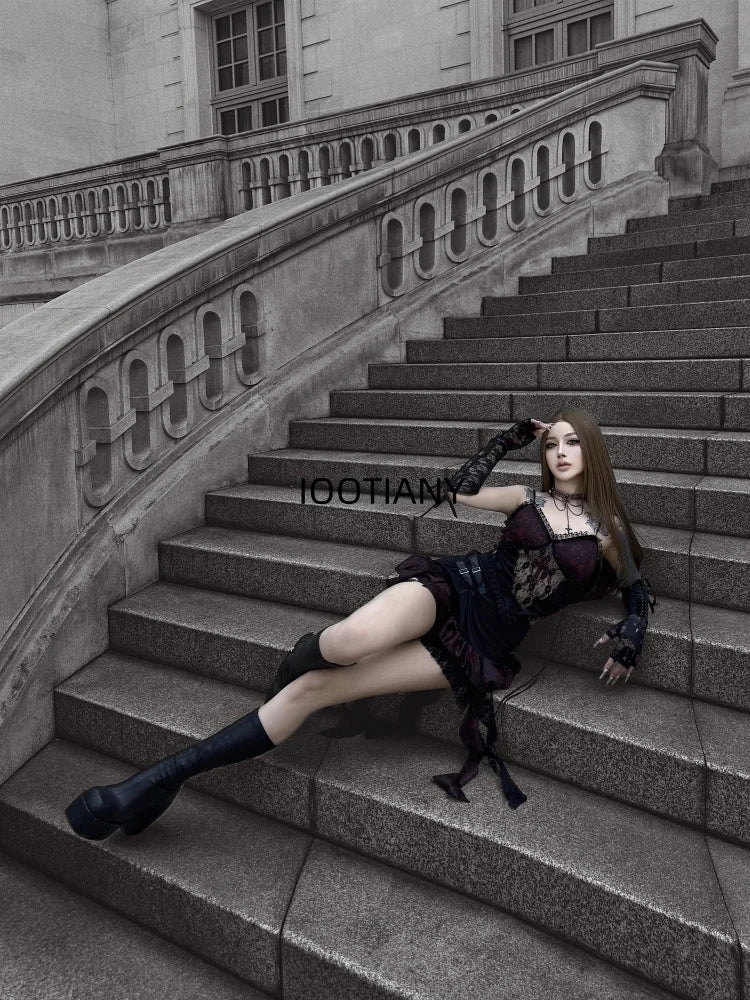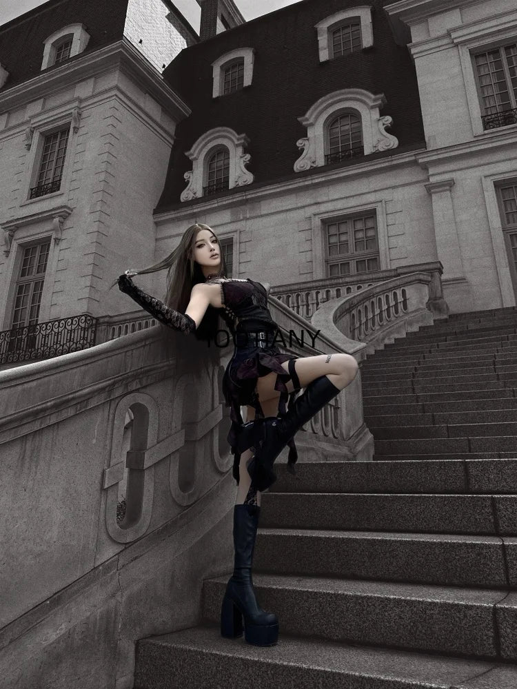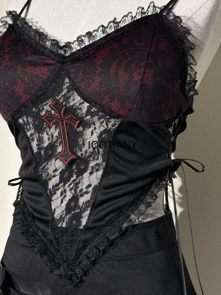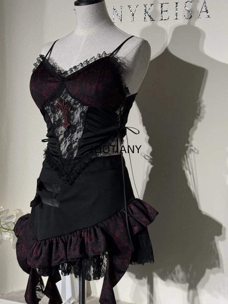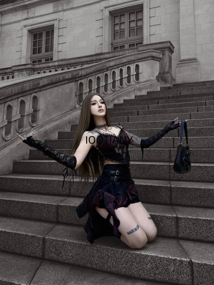 Déguisement de danse sexy pour fille, haut à bretelles croisées noires, jupe irrégulière, ourlet, costume de sœur, nouveauté 2025