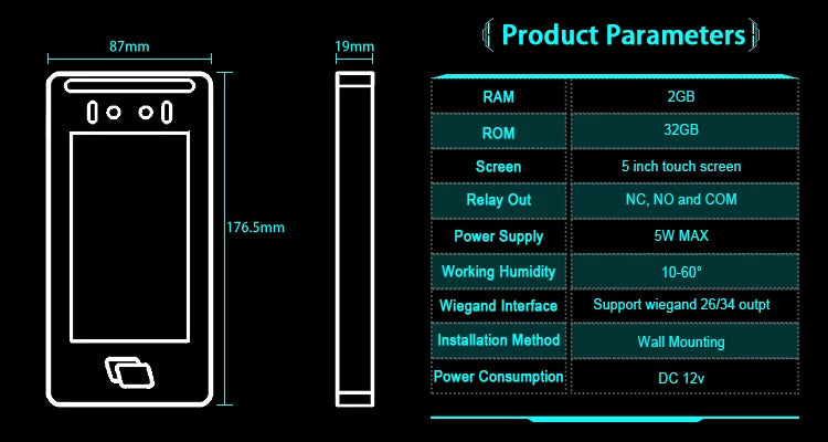 HFSecurity FR05 lecteur de carte RFID à reconnaissance faciale tout-en-un Wifi système de contrôle d'accès de présence lecteur de détection de visage