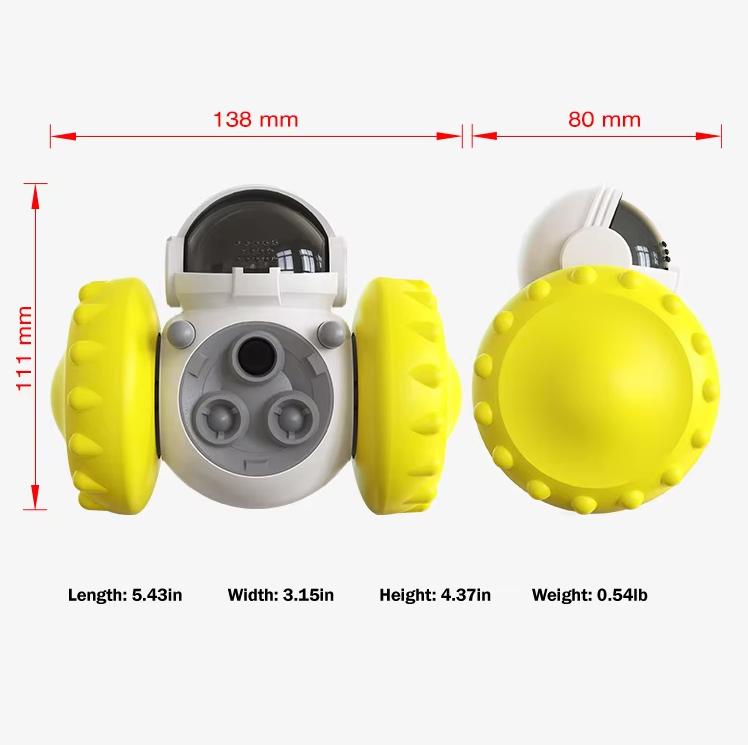 - Robot Fun & Function: Designed to engage both dogs and cats, this feeder features a playful robot-like design that wobbles and tilts as your pet interacts with it. The flip-type transparent granary lid allows you to easily add dry food or treats, which then fall out as your pet plays, rewarding them with every interaction.