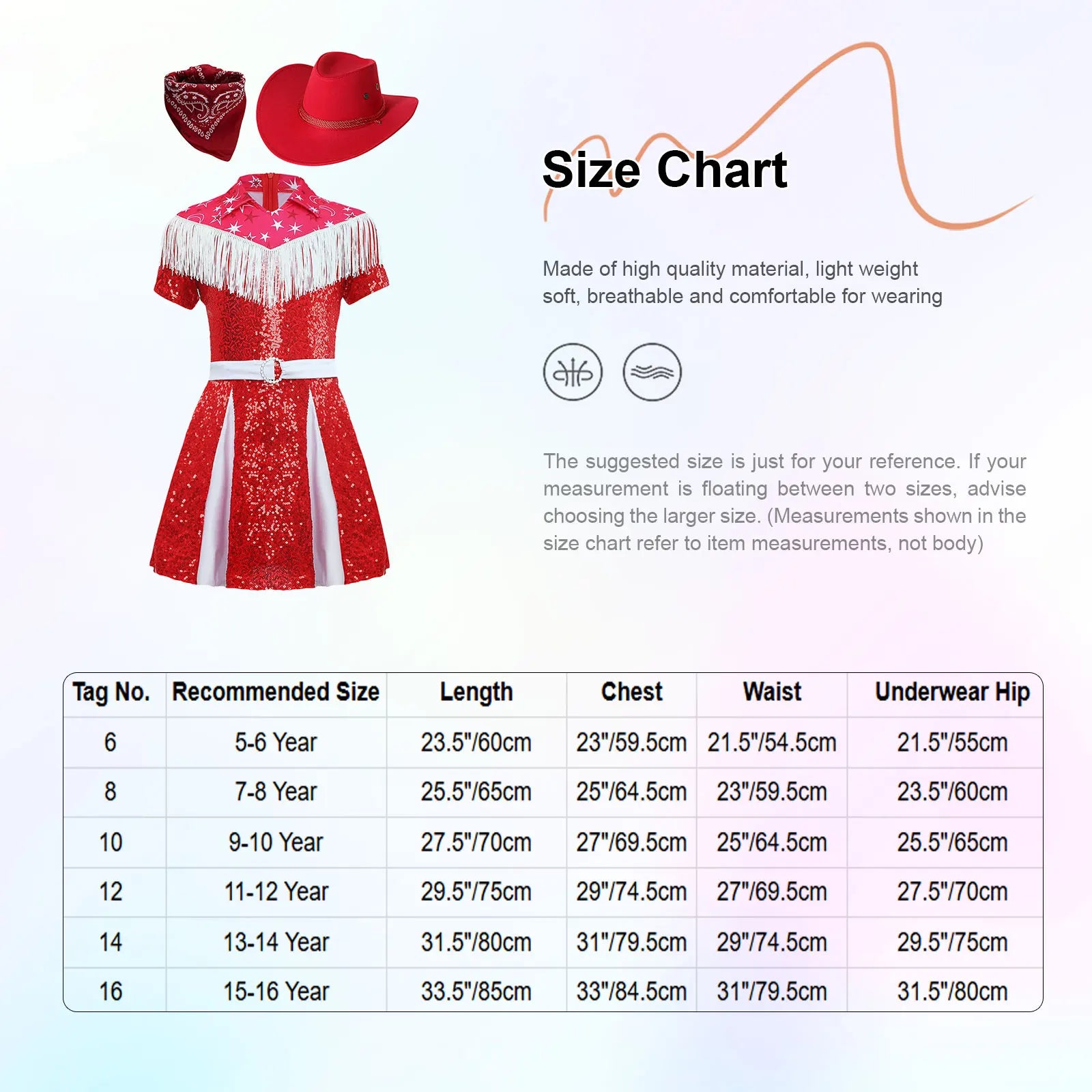 Set Include:1Pc Girls Dress, 1Pc Cowboy Hat, 1Pc Bandanna