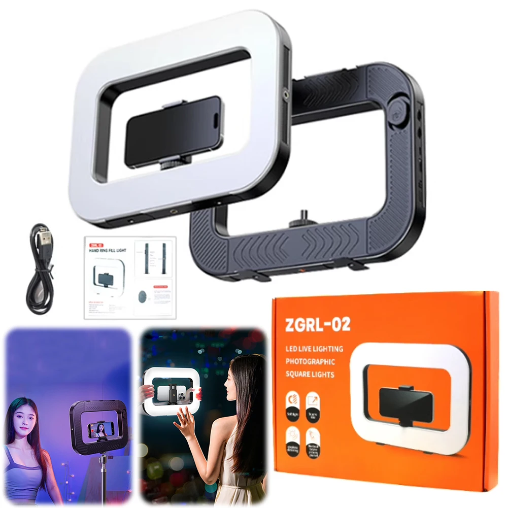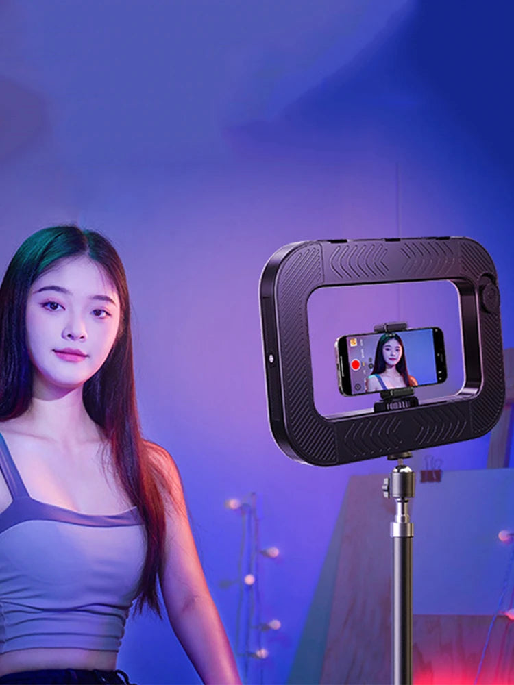 Features: 1.Professional Lighting Output: Enhance your video quality with the smartphone video rig with light, featuring ring-shaped illumination that minimizes facial shadows and softens skin tones, eliminating harsh overhead lighting effects. 2.Versatile Design: Utilize this handheld ring selfie light kit for both handheld and desktop applications. It easily mounts on tripods and integrates seamlessly with various shooting setups. 3.Convenient Compatibility: The LED phone light is designed for direct installation on phone cages without occupying charging ports, suitable for Bluetooth-compatible remote control features in specific models.4.Enhanced Shooting Efficiency: Ideal for smartphones and cameras alike, offering compatibility with mobile clamps and camera hot shoe adapters. 5.Ideal for Content Creators: for low-light recording, product photography, beauty selfies, and virtual meetings, ensuring you always get the best shot. Specification: Origin: Mainland China Product size: 295.00x225.00x30.00mm Product size: 11.61x8.86x1.18inch Light source power: 20W Voltage: 110v Type: LED fill light Usage: handheld Main application: live photography fill light Function: three color temperatures Material: ABS Color: as shown