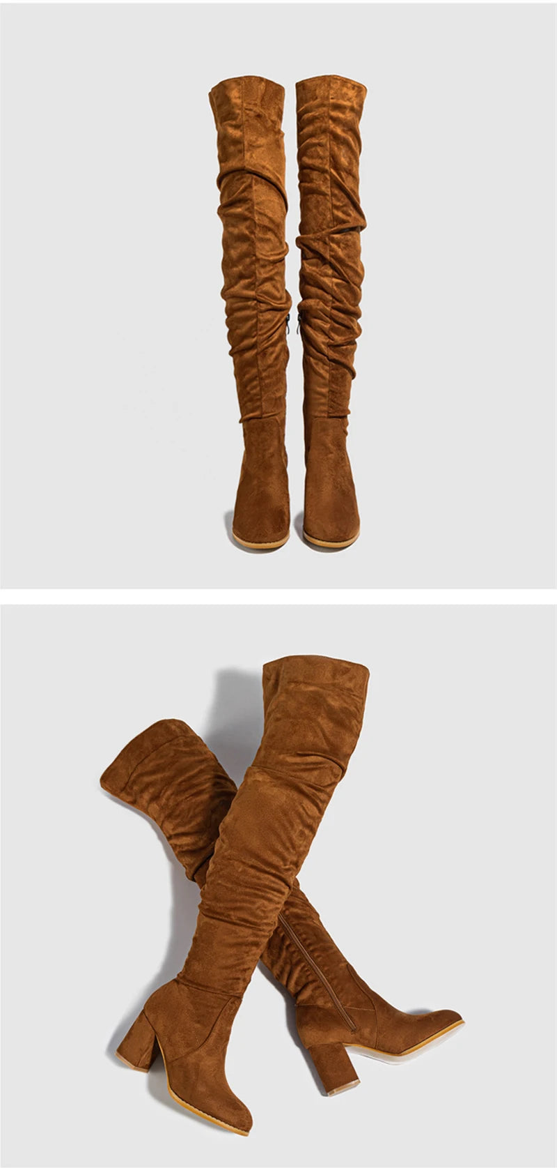 Liyke 2025 Autumn Winter Black Brown Over The Knee Boots Women Sexy Pointed Toe Zip Thigh High Shoes Square Heels Booties Femme