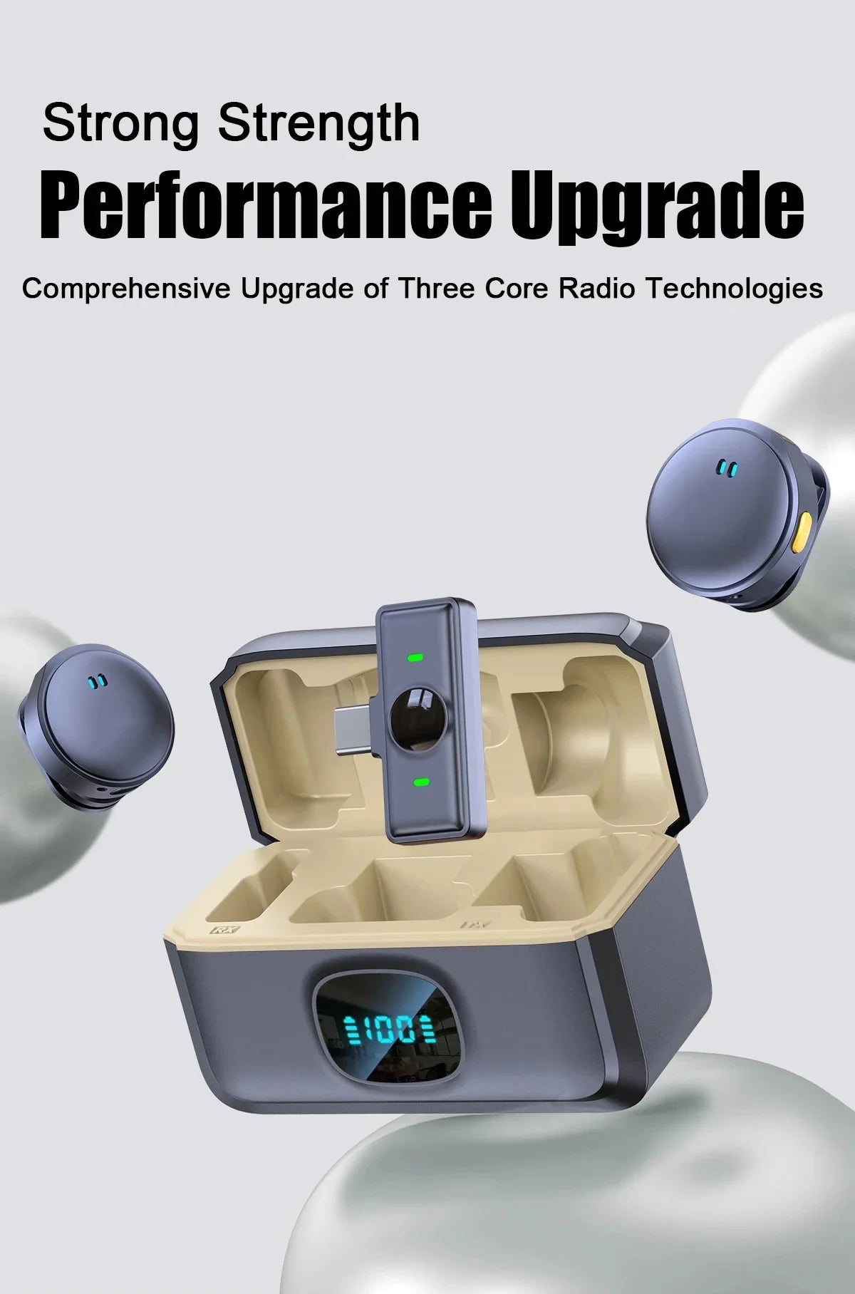 Microphone Lavalier 2.4GHz, sans fil, à aspiration magnétique, avec étui de chargement, pour enregistrement vidéo, Plug and Play