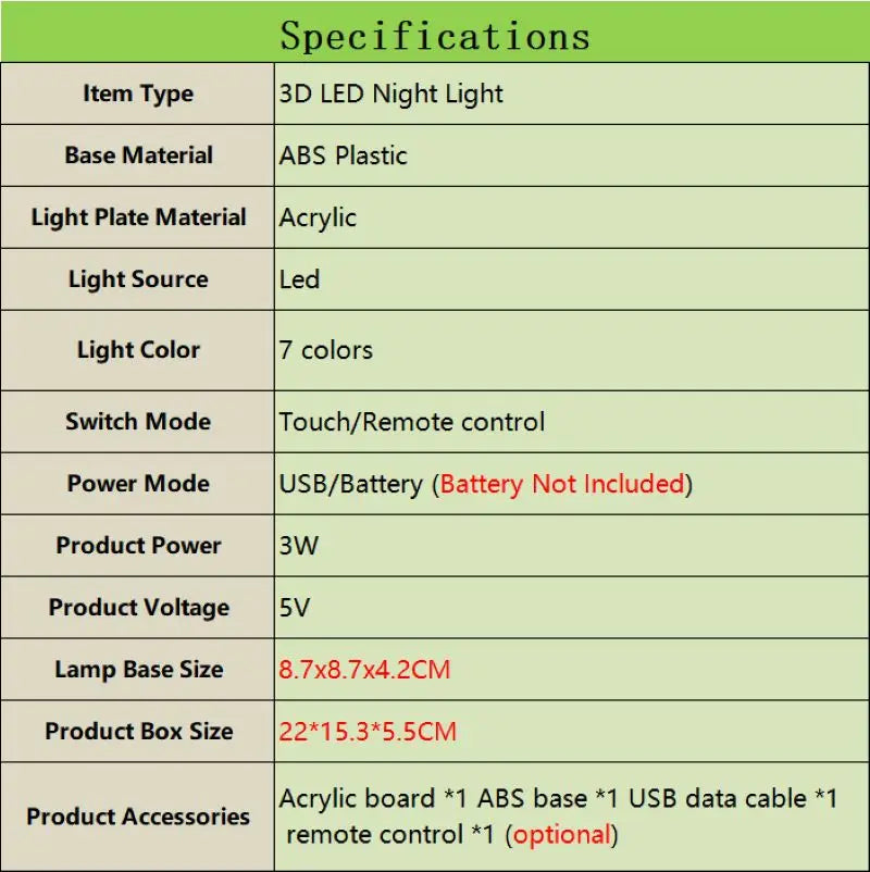 Model Number: 3D Illusion Lamp