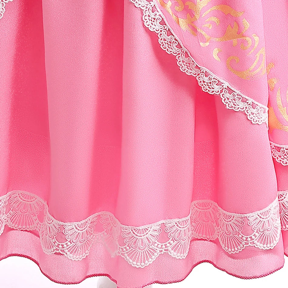 Peach Princess Costume with LED Color Light Toddler Birthday Game Role Play Dress Girl Halloween Festival Gown Pink Lace 2-9 Y C