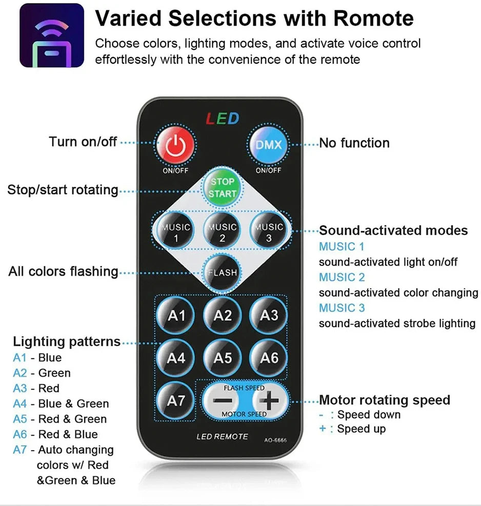 RGB LED Stage Disco Light Rotating DJ Ball Strobe Remote Sound Control Dj lights Karaoke Wedding Party Bar Club Laser Show Lamp