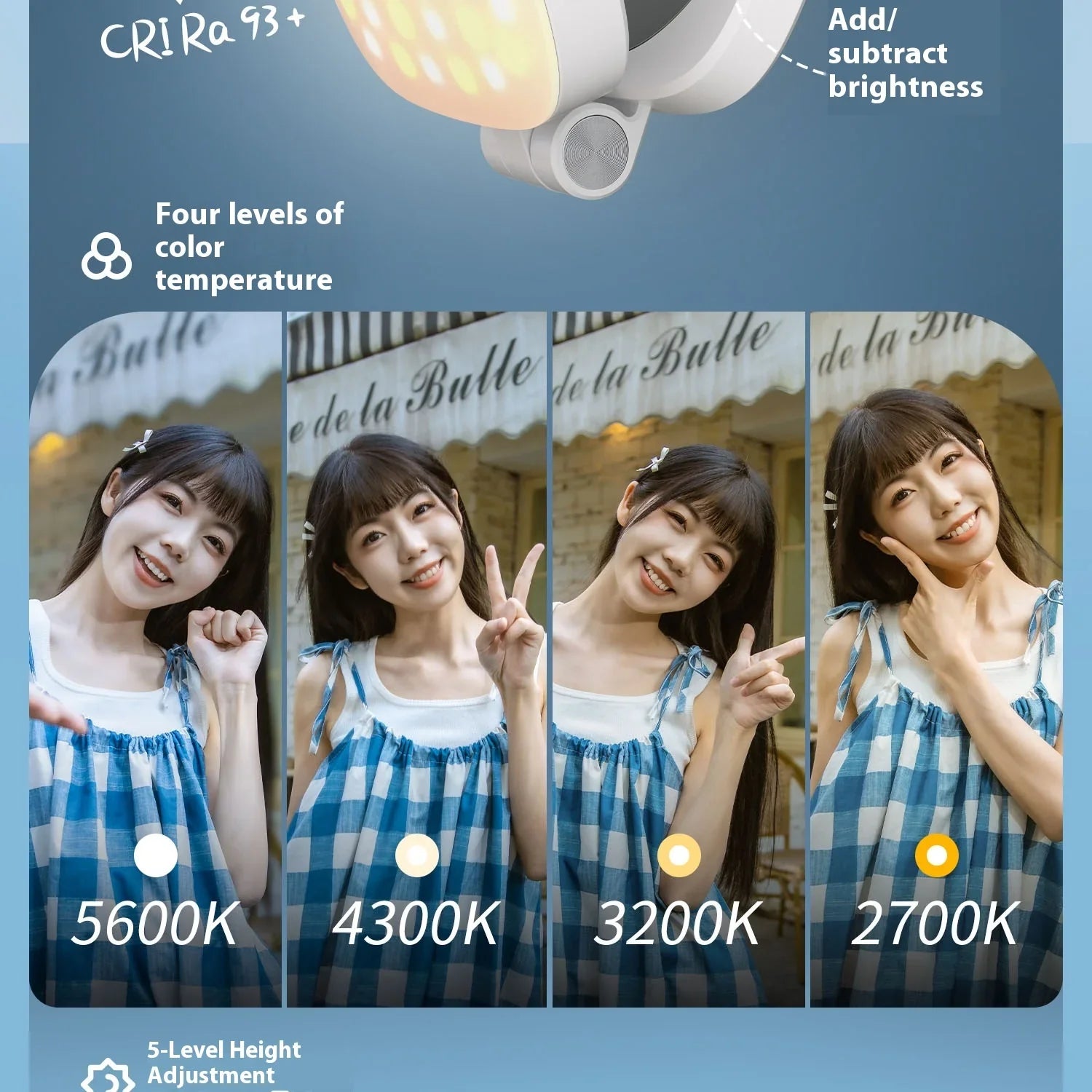 1: Magnetic dual color temperature fill light