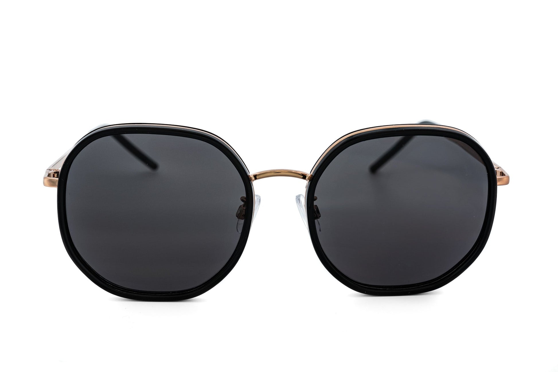 Velluto channels vintage glamour with modern refinement, featuring oversized rounded lenses framed in slim gold-tone metal and accented with deep black rims. Lightweight, durable, and effortlessly elegant, it offers scratch-resistant clarity and full UV protection—your timeless companion for city strolls, seaside days, and every sunlit moment in between.