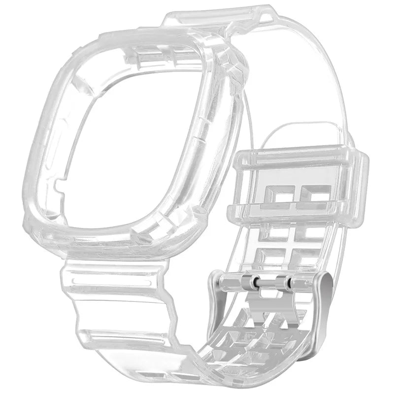 Watchband Case for Fitbit Versa 4 Versa 3 Adjustable TPU Rugged Smart Watch Clear Protective Cover Wristband for Fitbit Versa 3