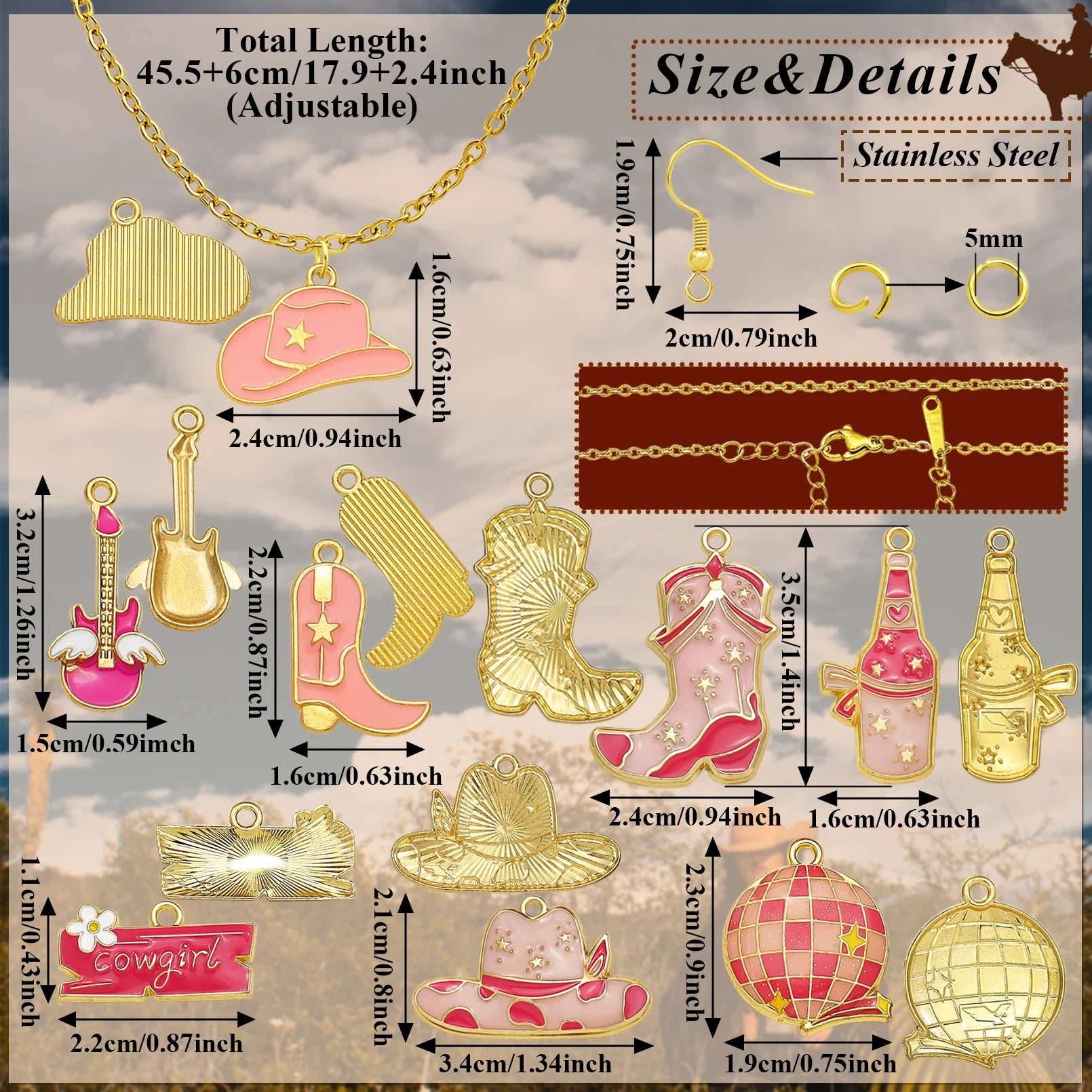 Pendentif Cowboy Western DIY Fabrication artisanale de bijoux pour boucles d'oreilles Bracelet Collier Émail Chapeau Cowgirl Bottes Breloques Accessoires