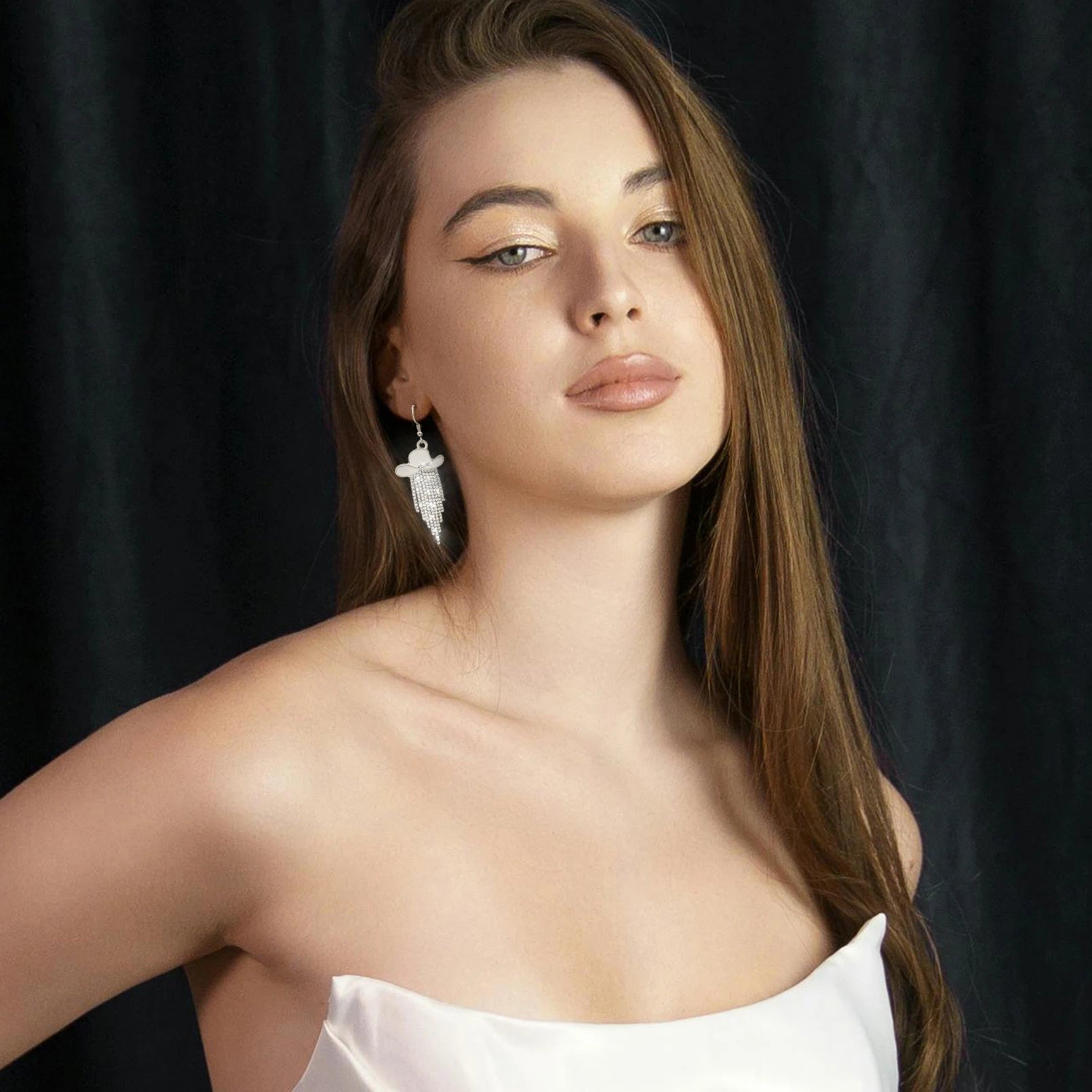 Western Cowgirl Dangle Earrings Enamel Hat Sparkly Rhinestone Tassel Pendant Prom Country Concerts Rodeo Cowboy Women Jewelry