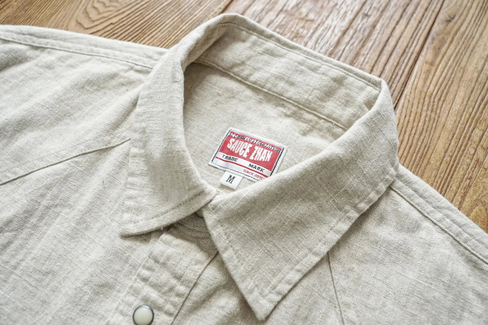 Western Sle Linen irt Men's Casual Long Sve Pure Color Loose Fit Classic Collar Button down Trendy Khaki irt