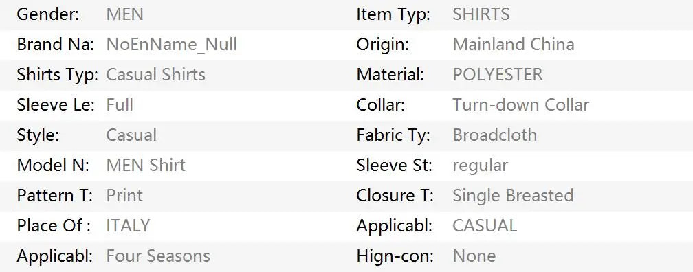 Type d'article : CHEMISES