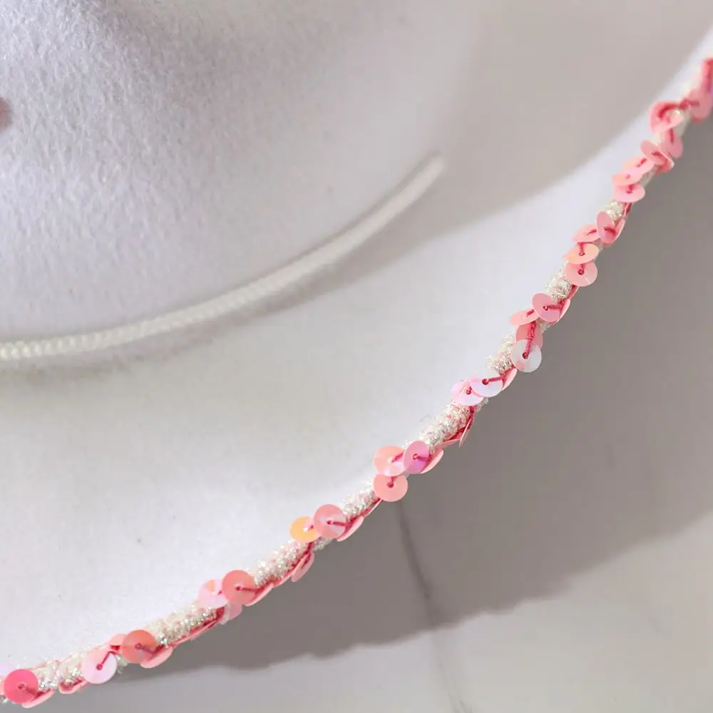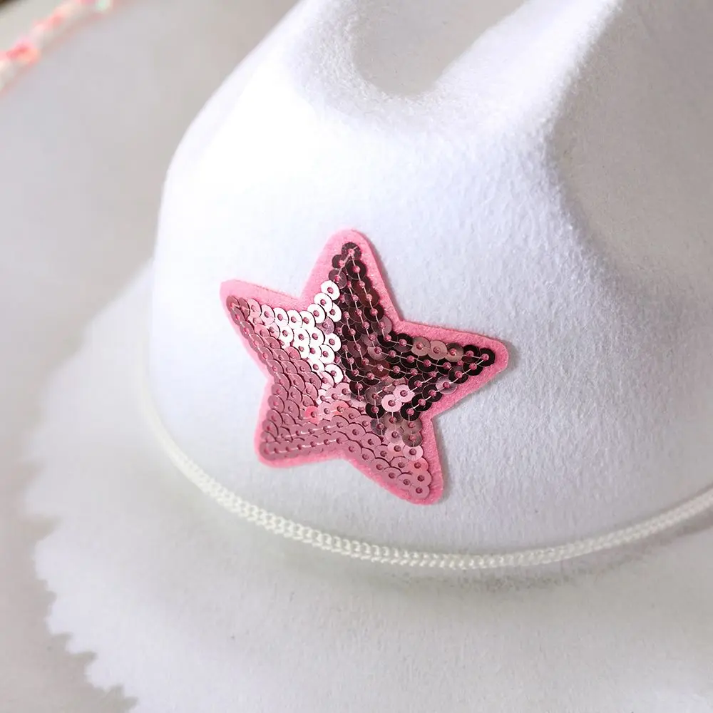 Chapeau de cow-girl blanc, chapeau de cow-girl étoile rose avec bordure à paillettes, frange, cou réglable, cordon de serrage, chapeau de cowboy adulte pour fête costumée