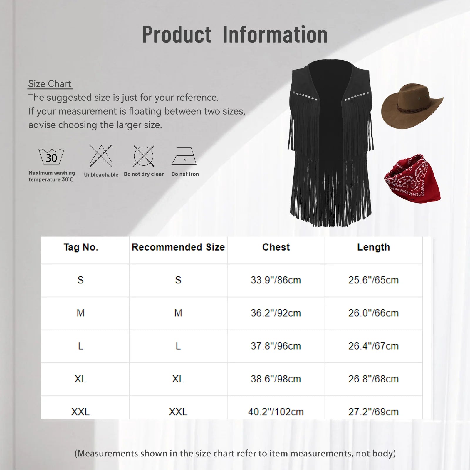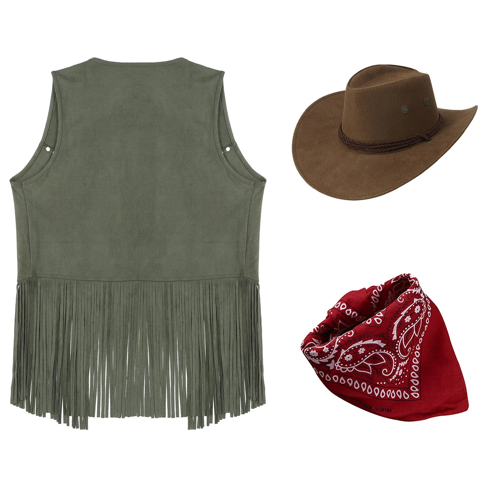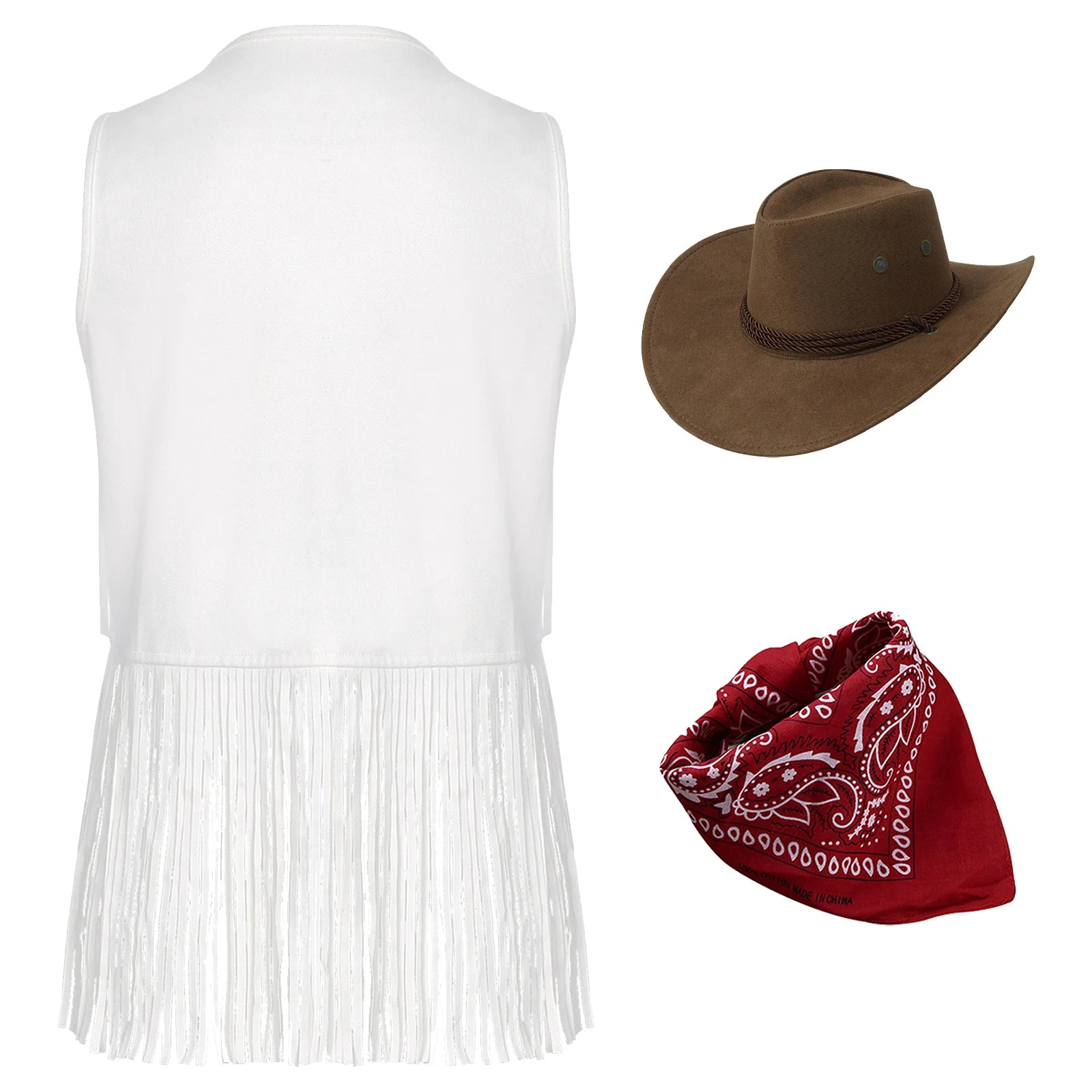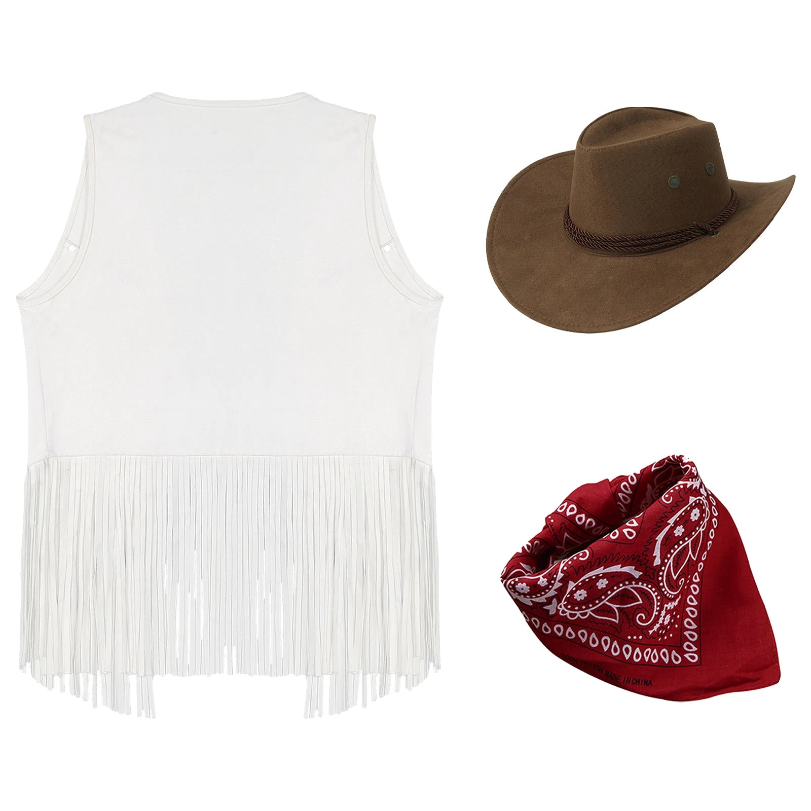 Gilet de cowboy pour femme, costume de cosplay, en faux daim, avec pompons et rivets, pour Halloween, avec bandana