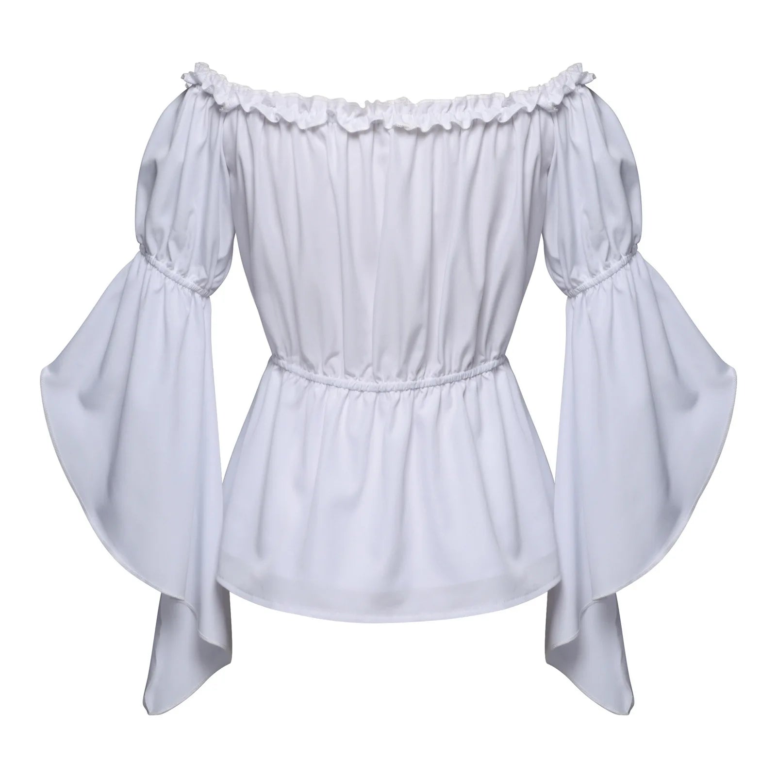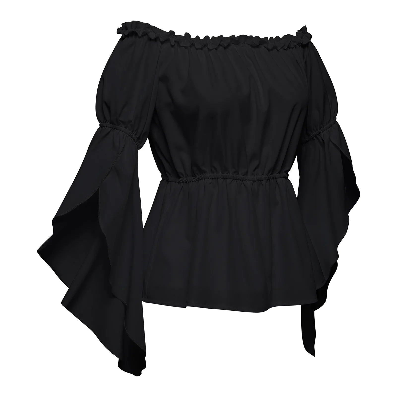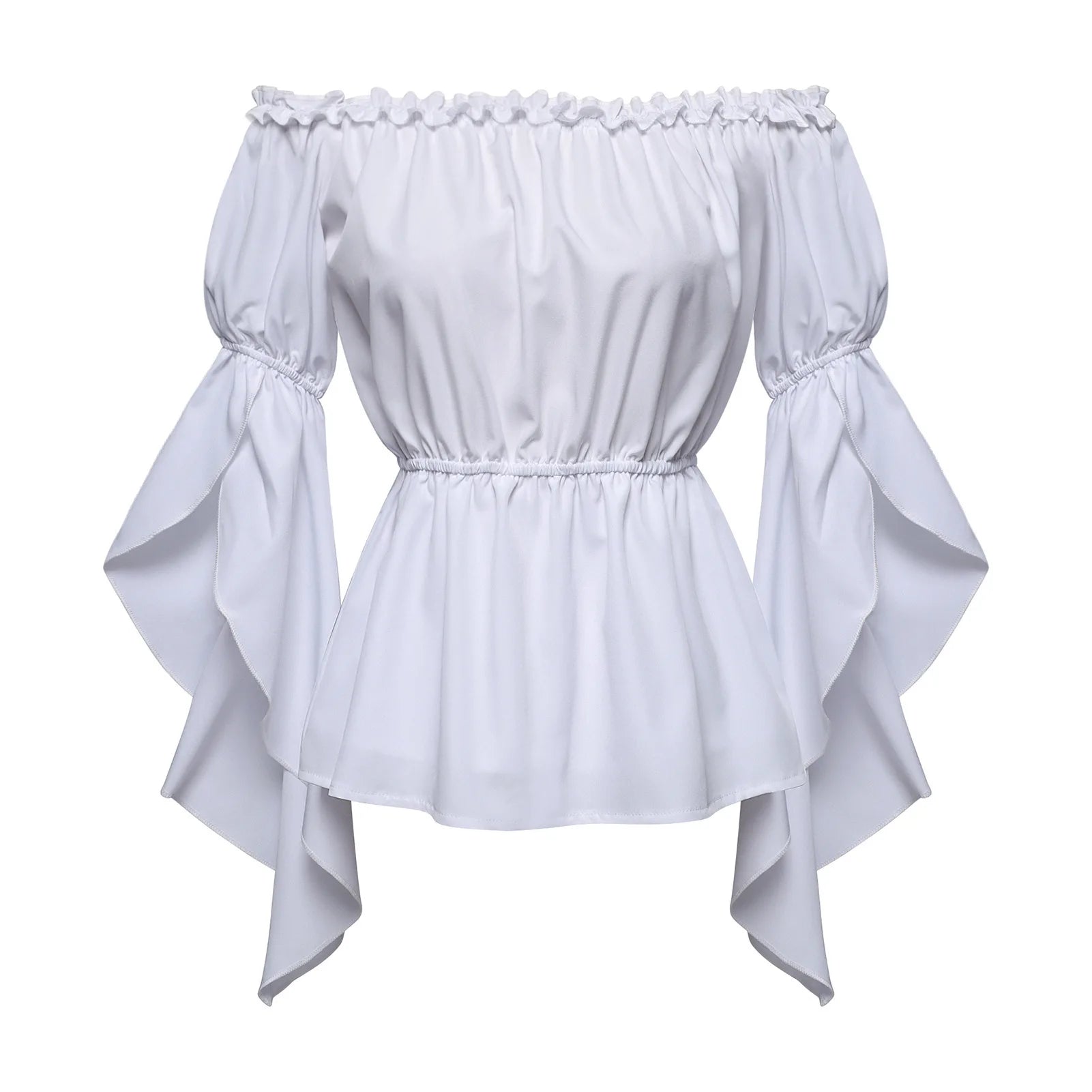 Chemises à volants Renaissance pour femmes, chemisier plissé à manches froissées, épaules dénudées, col bateau, chemise médiévale, chemise victorienne
