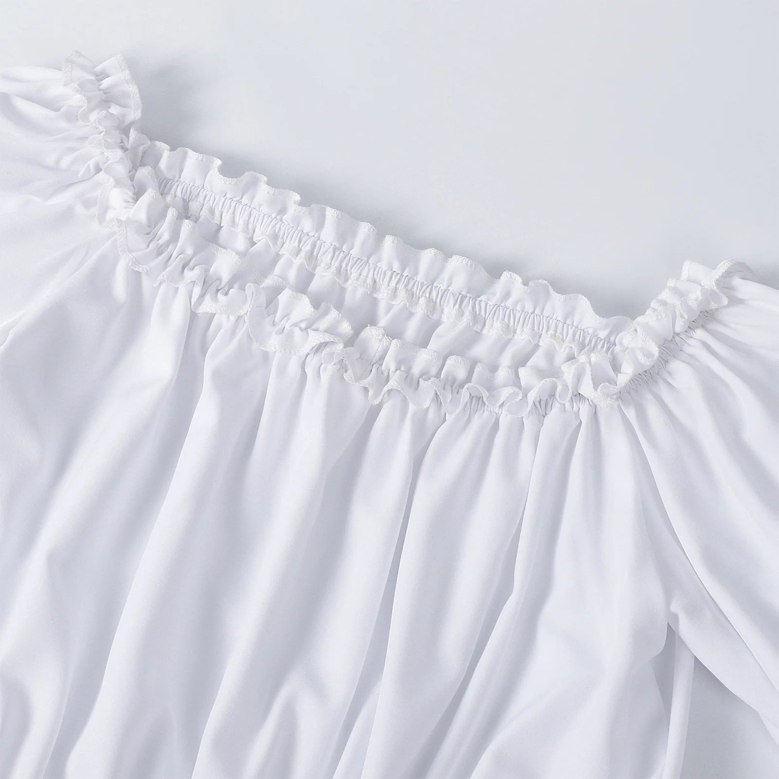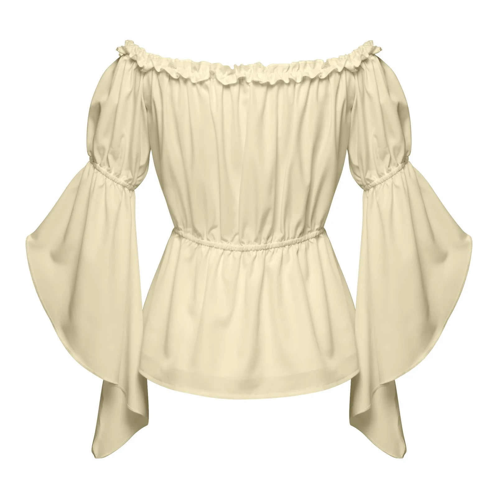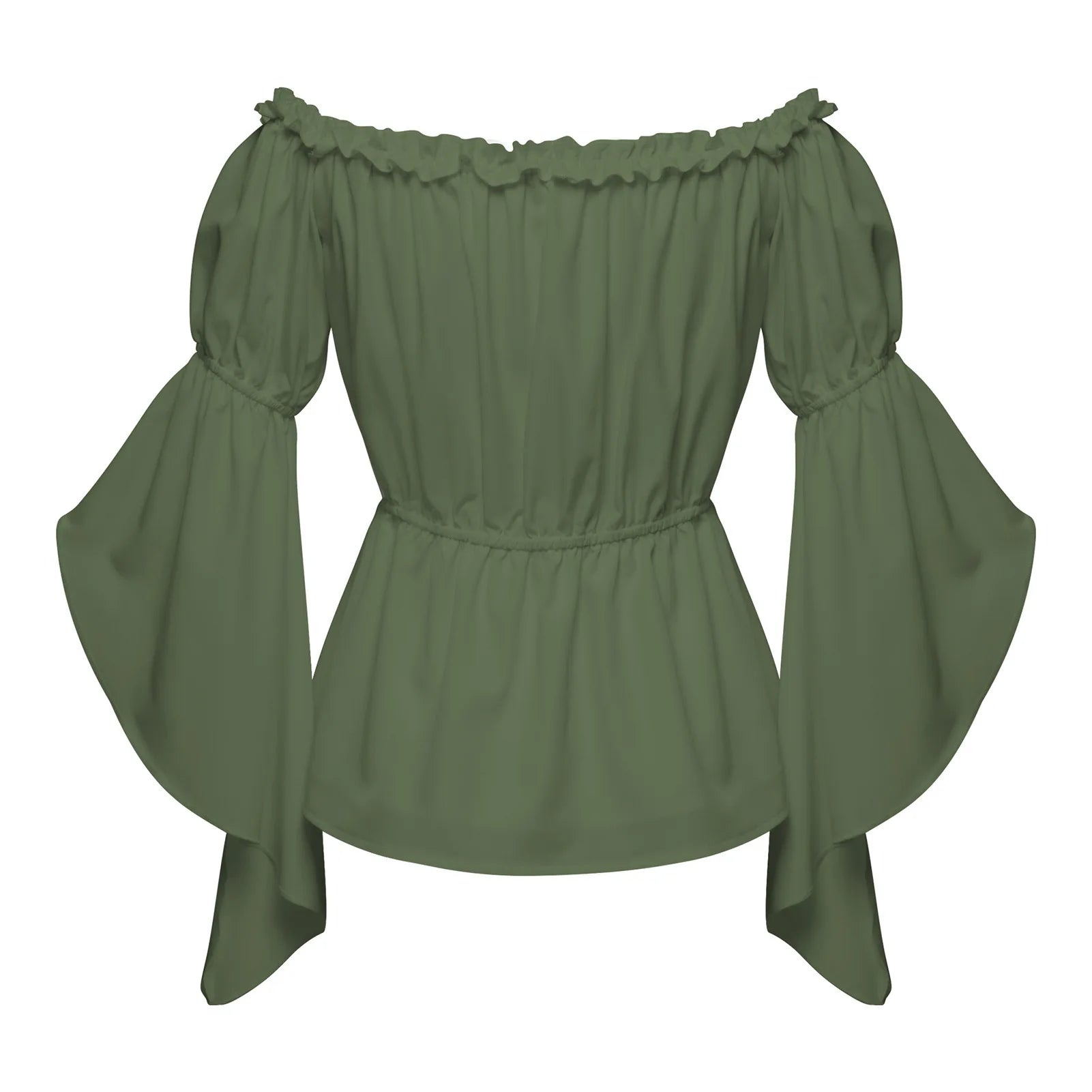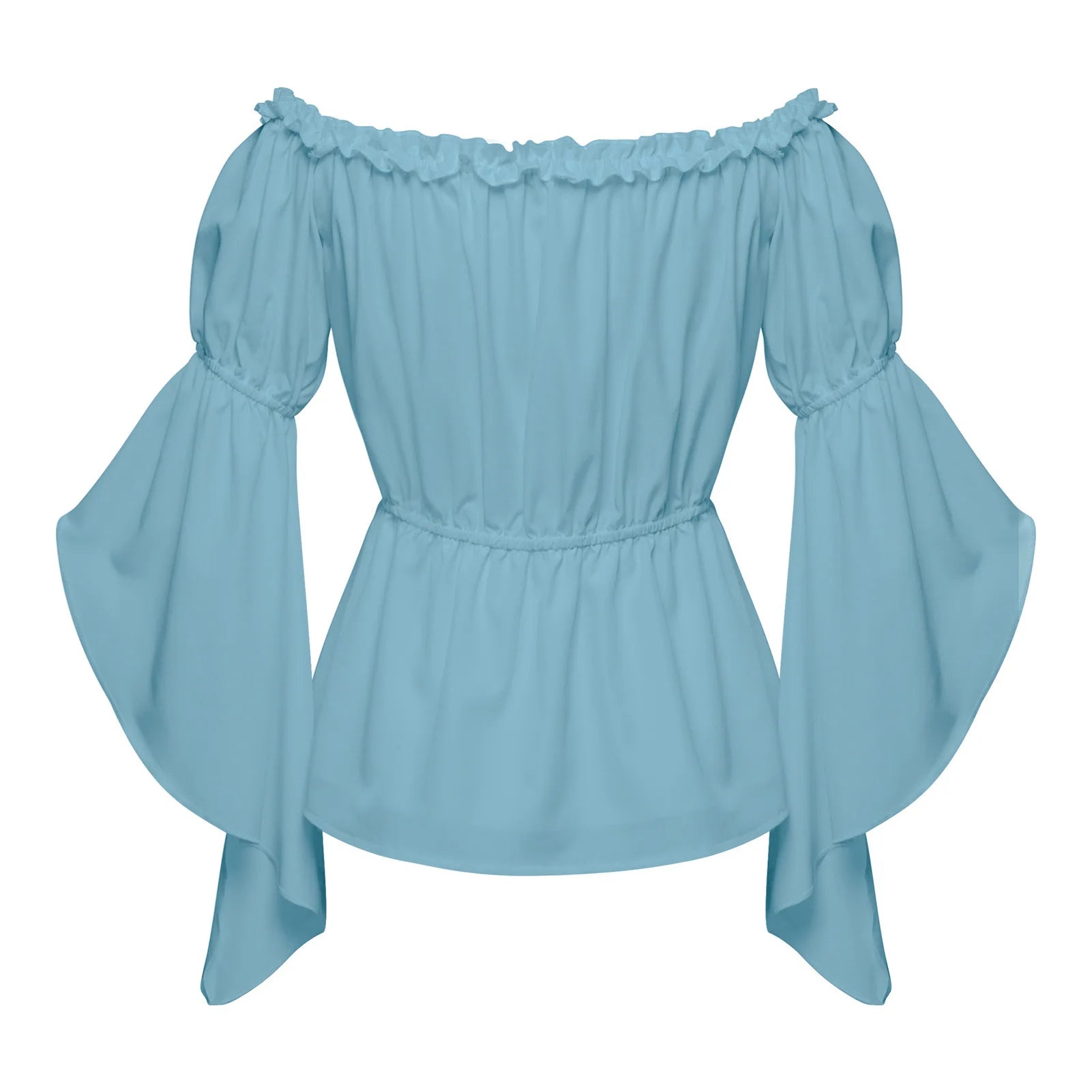 Chemises à volants Renaissance pour femmes, chemisier plissé à manches froissées, épaules dénudées, col bateau, chemise médiévale, chemise victorienne